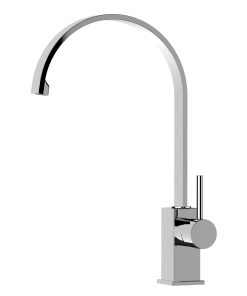 Wasserhahn Küchenarmatur, BOD, mit 360° schwenkbarem L-Auslauf, Verchromt / Weiß Granit