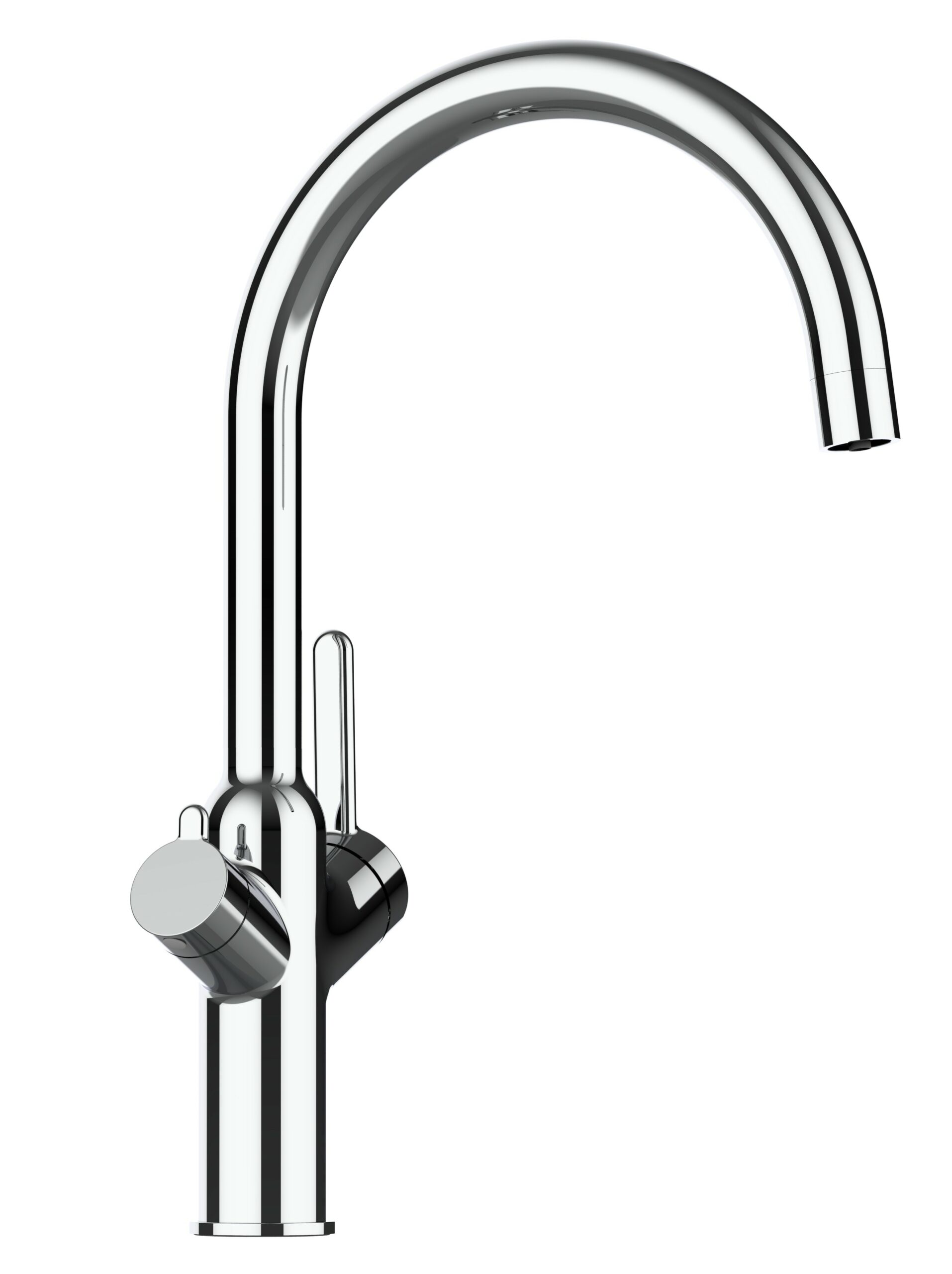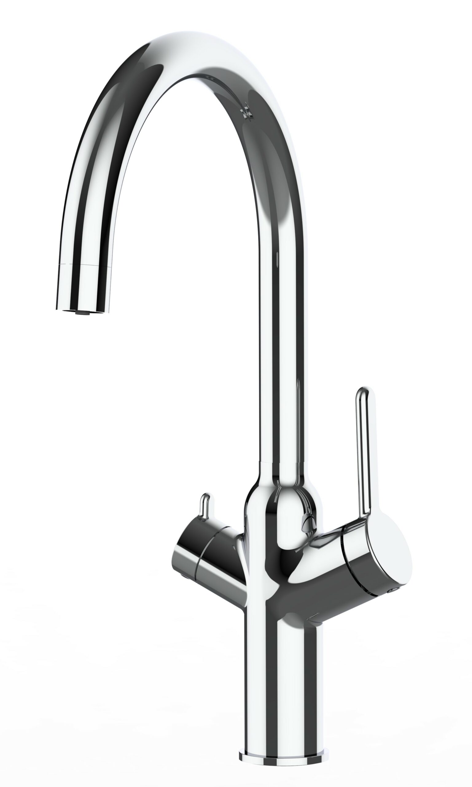 3 Wege Wasserhahn Küchenarmatur Spültischmischer BOD, Verchromt mit 360° schwenkbarem Auslauf – für Kalt-,Warm- und Filterwasser mit separatem Ventil am Hahn und separatem Auslauf für gefilterte Wasserentnahme