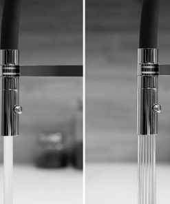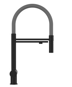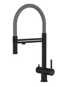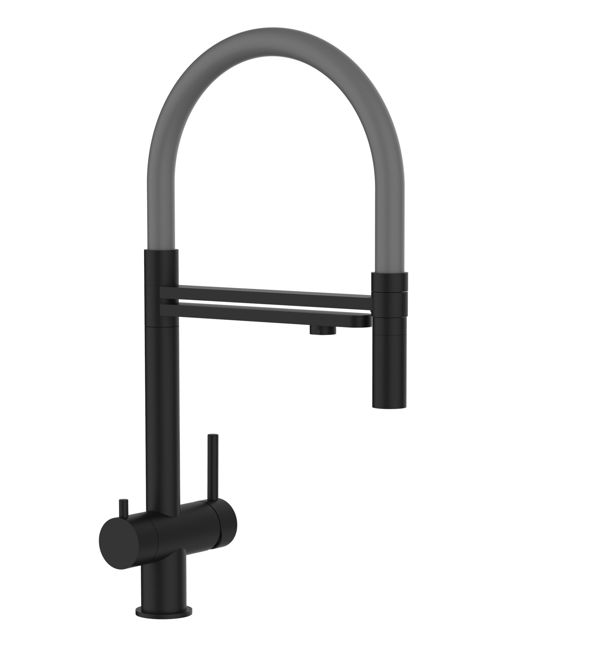 3 Wege Wasserhahn Küchenarmatur, Edelstahl Massiv mit 360° schwenkbarem Auslauf und abnehmbare 2 strahl Handbrause, PVD Schwarz Matt / Grau