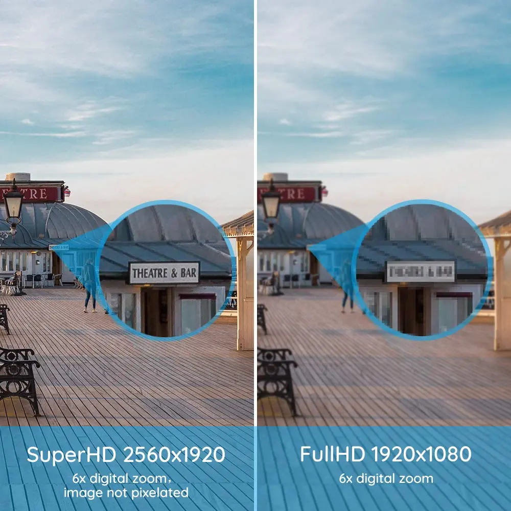 5MP Super HD -Schärfere Videoaufnahmen und Klarere Nachtsicht Geniessen Sie naturgetreue Bilder&Videos in 5MP HD Auflösung, eindeutig 4.5X Mal klarer und schärferer als 1080P oder 1080N. Sie jetzt jederzeit feststellen, was in Ihrem Haus geschieht. Die hervorragende Nachtsicht ermöglicht Ihnen bis auf 30 Meter Entfernung in der Dunkelheit zu sehen. Alle Details im Blick.