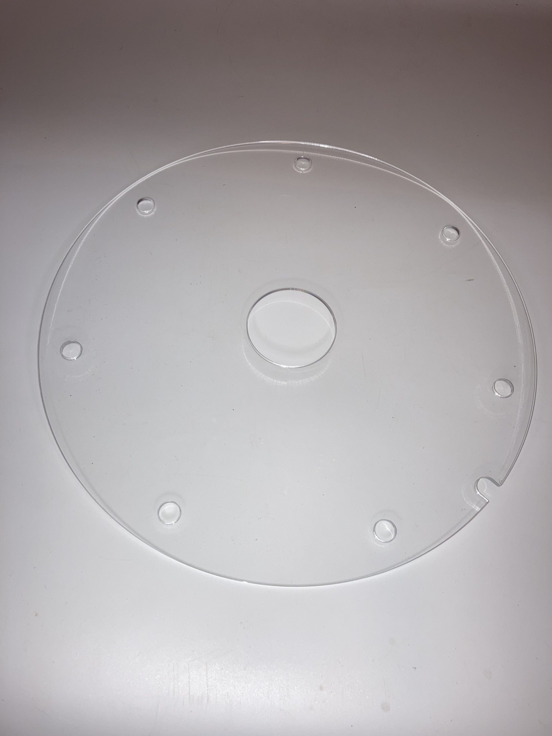 Hochqualitative und robuste Acrylglasplatte im Durchmesser von 33cm.