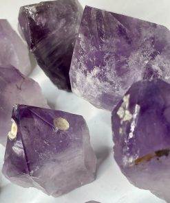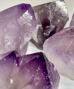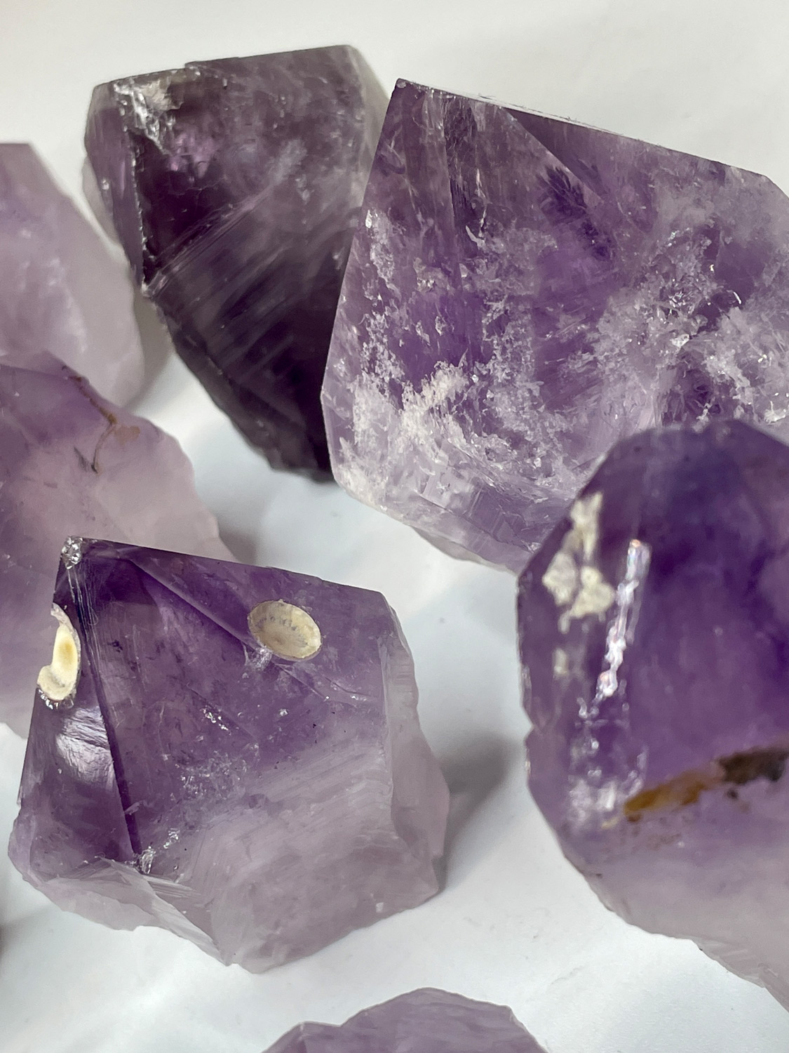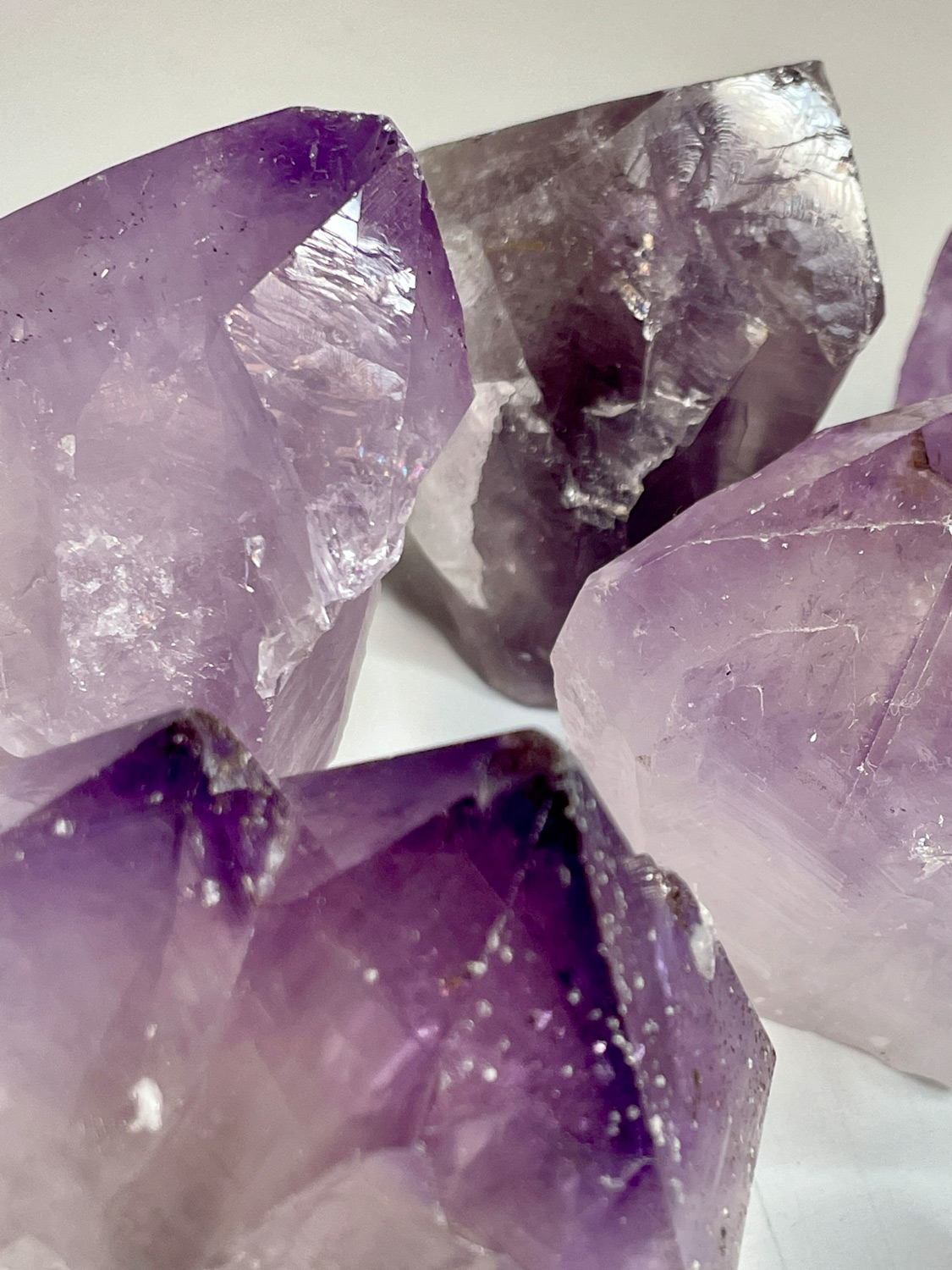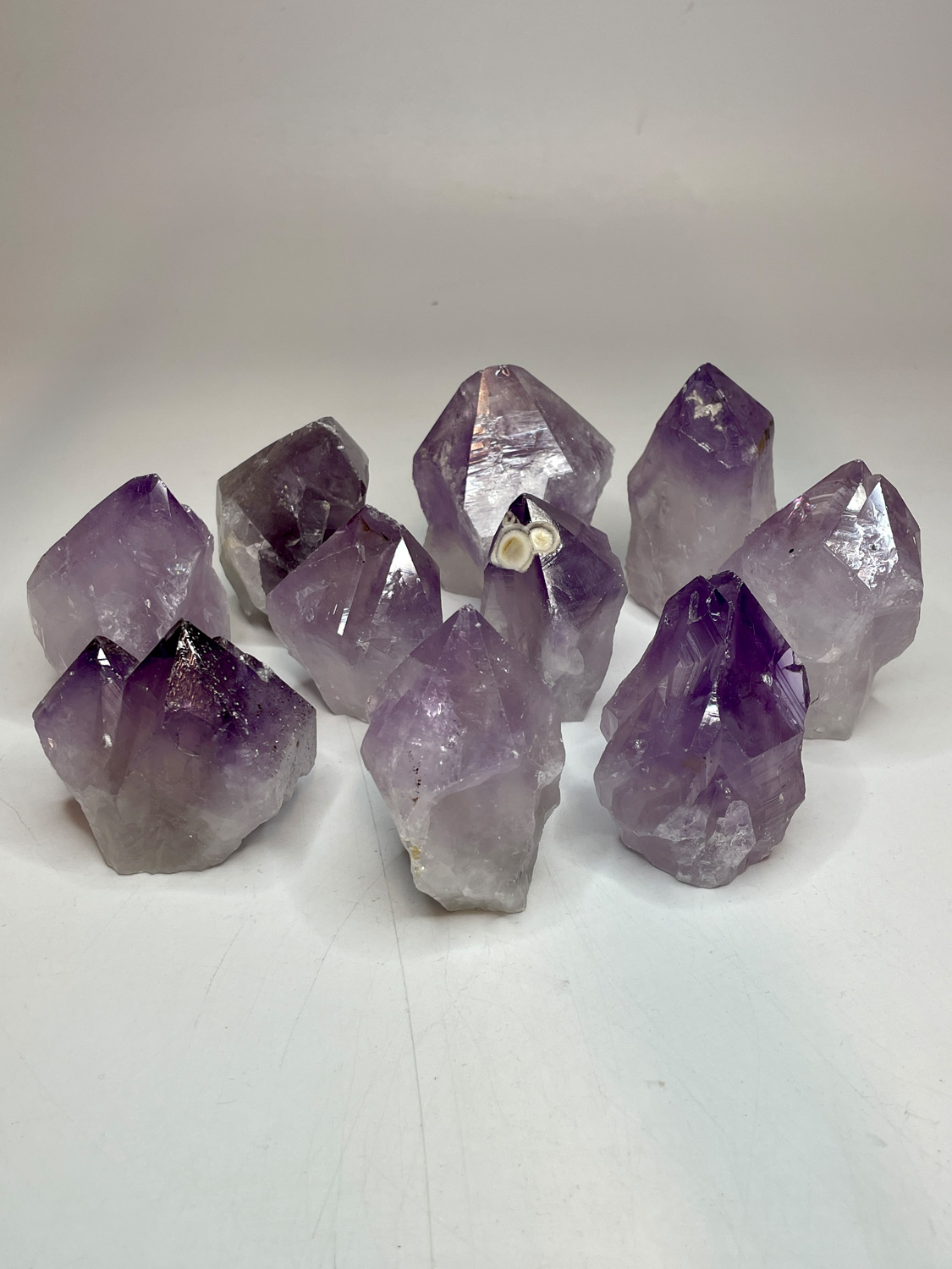 Bei diesen Amethyst-Spitzen reicht das Farbspektrum von einem hellen & klaren bis zu einem dunklen & kräftigen Violett.