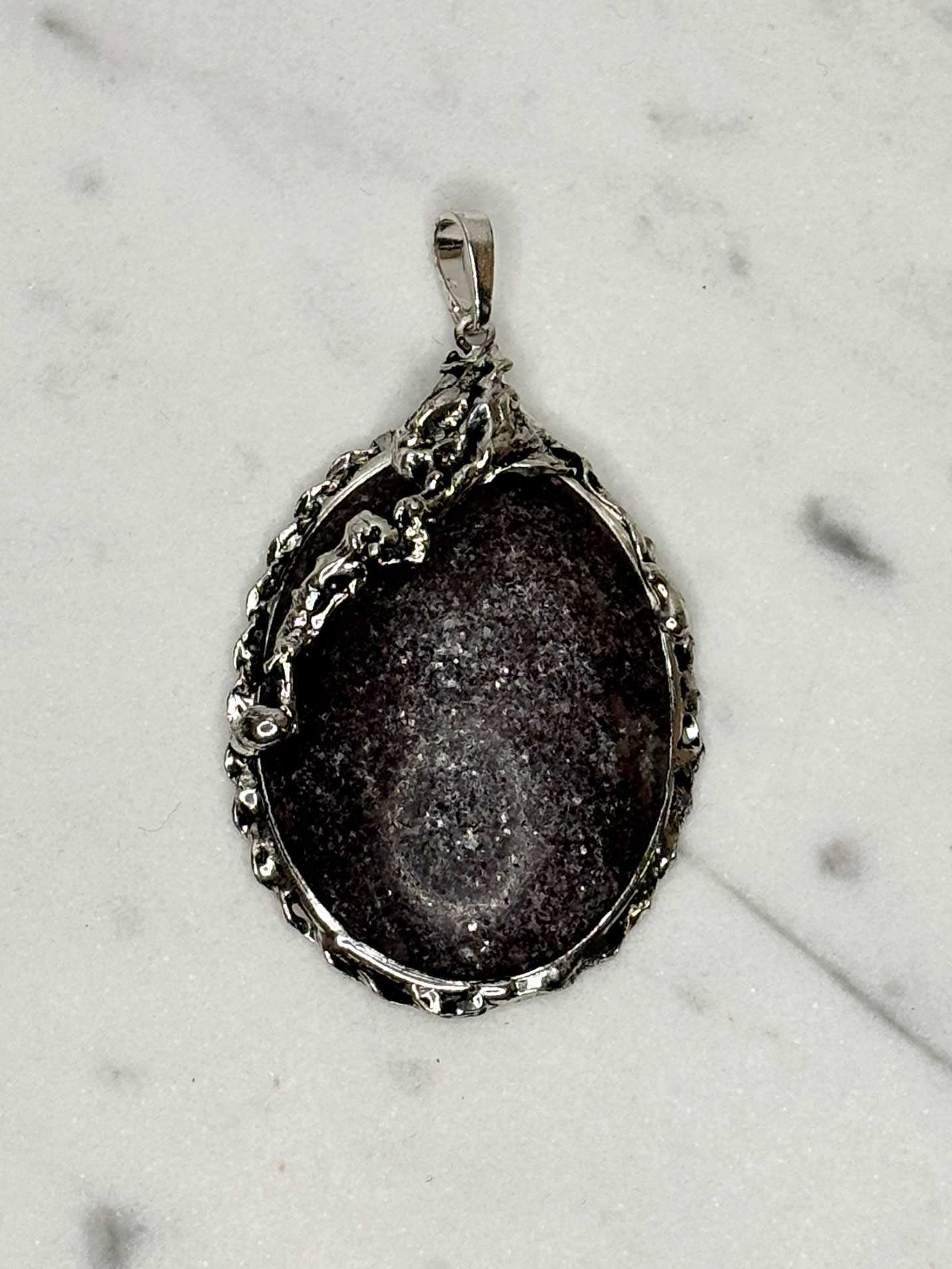 Die Fassung besteht aus nickelfreiem, hochwertig versilbertem Metall und wurde nach der Form des Edelsteins handgefertigt.