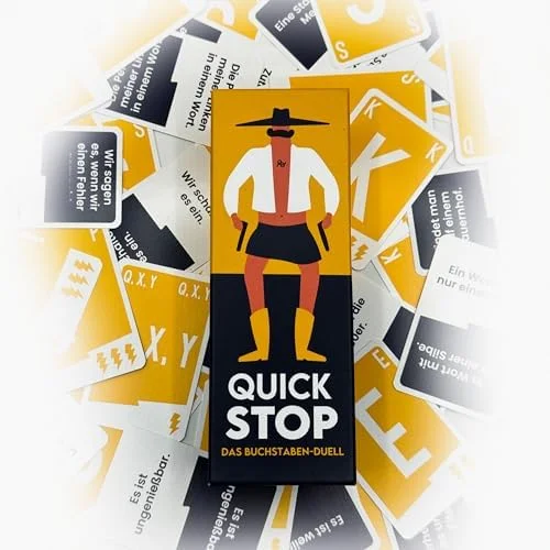 • 🥳 Erlebe das rasante Gesellschaftsspiel „QUICKSTOP“ – Spannung pur für dich und deine Freunde! Perfekt für 2-7 Spieler, in 15-30 Minuten seid ihr im Spiel. Die Regeln? In einer Minute erklärt – und der Spass kann losgehen!