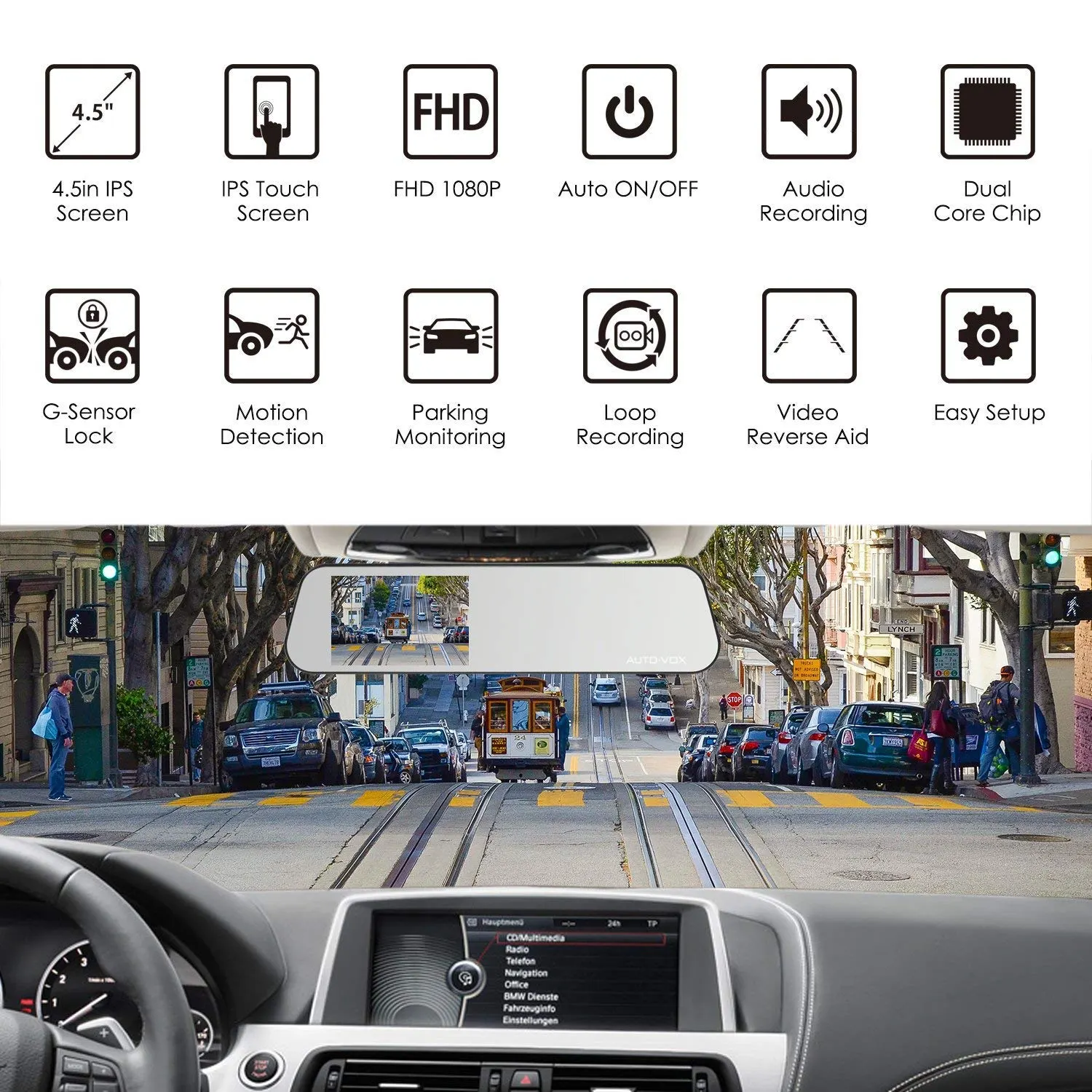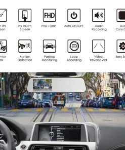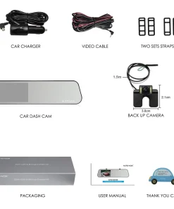Autokamera DashCam Spiegel Rückfahrkamera Set, FHD1080P Dual Lens,4.5″