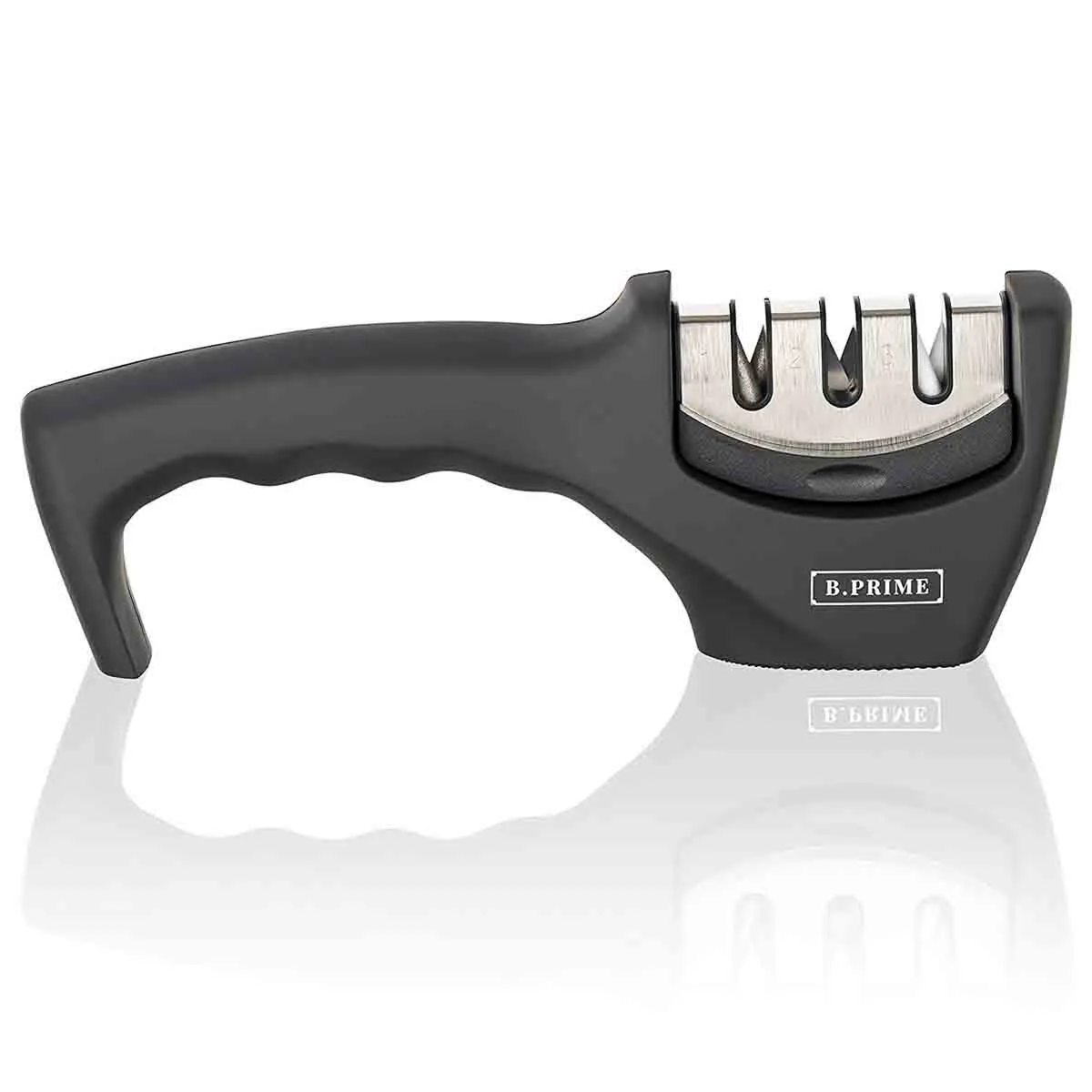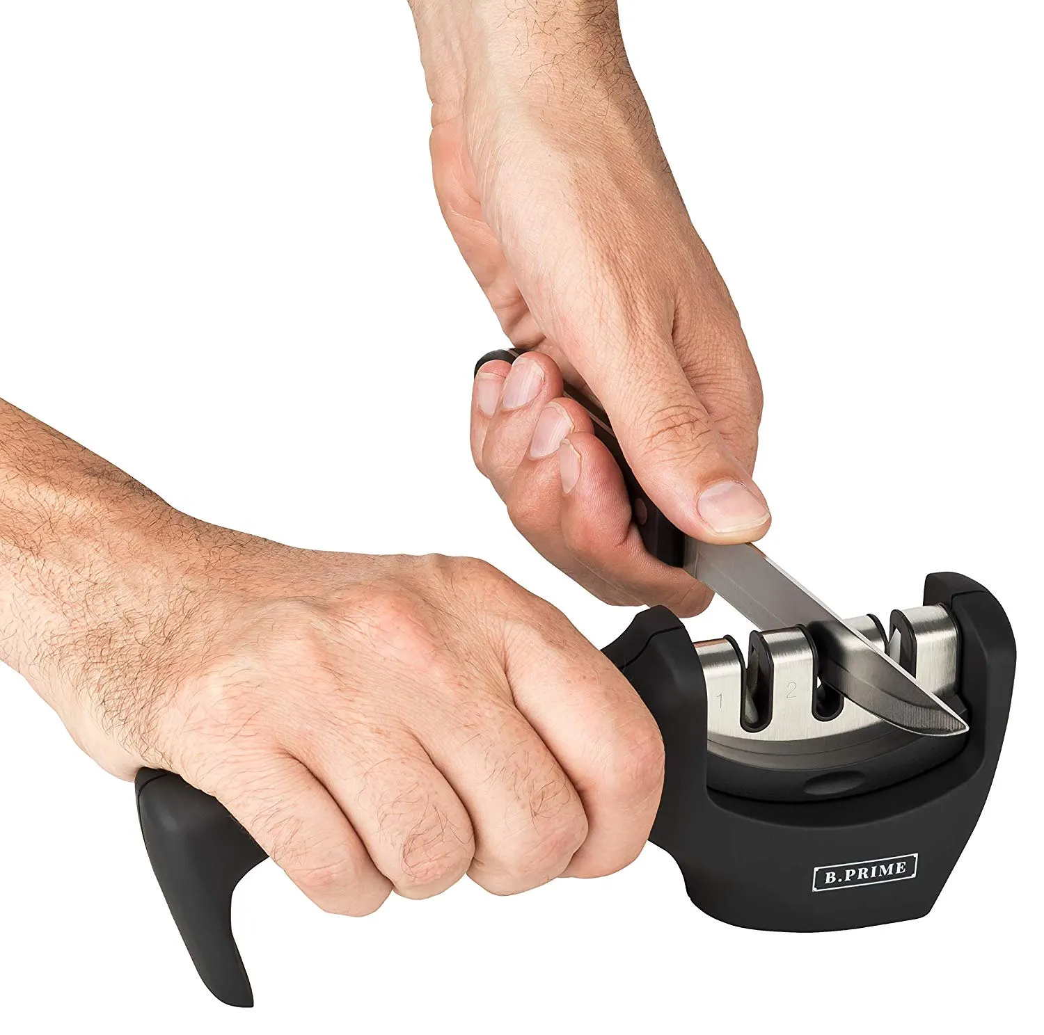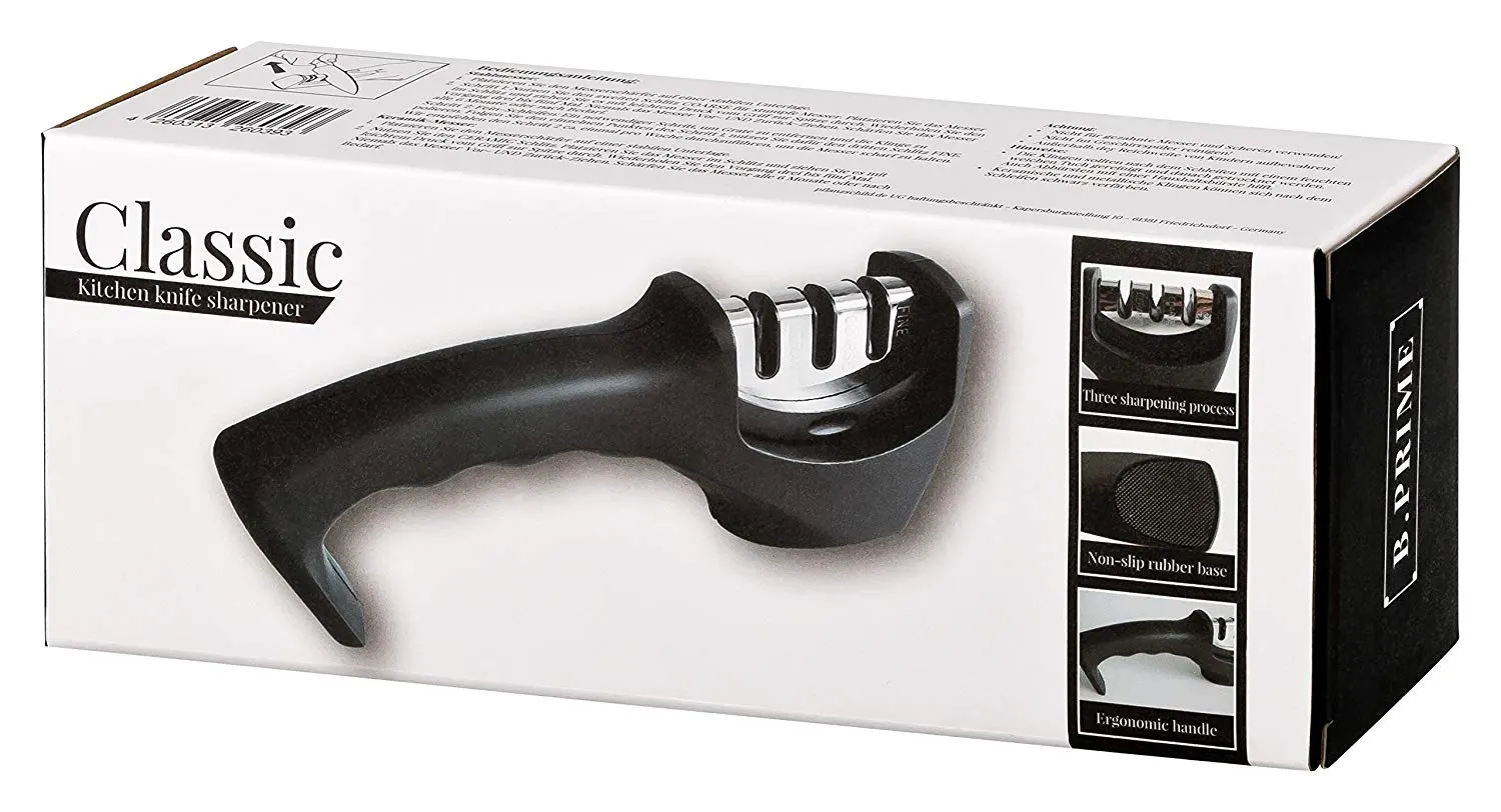 Sparen Sie sich das Geld für neue Messer, denn sogar alte stumpfe Messer bekommen Sie dank diesem B.PRIME Messerschärfer wieder scharf wie neu.[/vc_column_text][vc_empty_space height=“5px“][vc_column_text]
