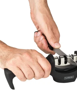 Durch die kleine Bauart findet der Messerschleifer Platz in der kleinsten Küche. Auch für unterwegs und Outdoor ist das kleine Raumwunder so immer mit dabei.