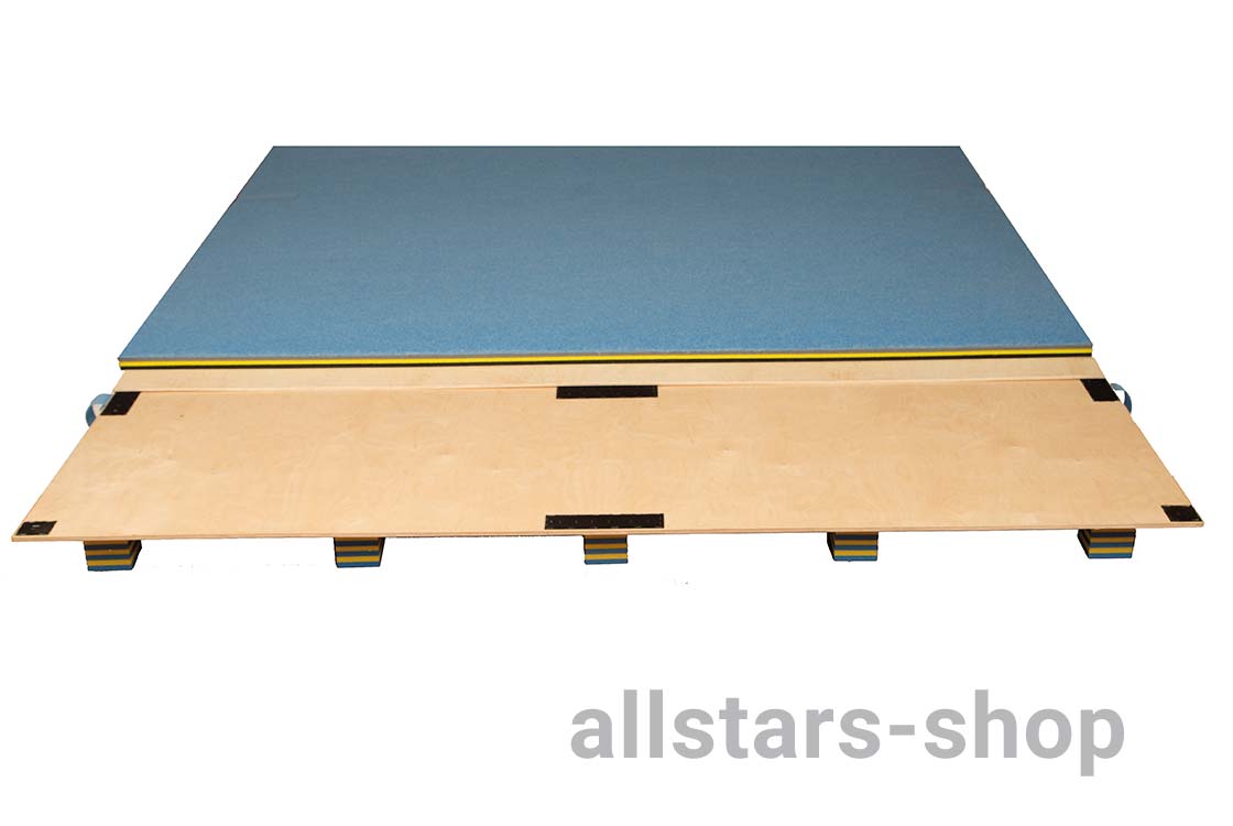 Mit Klettbandstreifen können vorhandene Bodenturnmatten auf der Tumblingbahn Speedy 2000 befestigt werden.