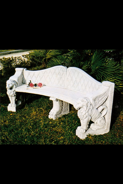 Diese außergewöhnliche Bank ist wahrlich ein Blickfang. Sie ist an den Armlehnen reich mit geflügelten Löwen verziert und ist eine Bereicherung für jeden Garten.