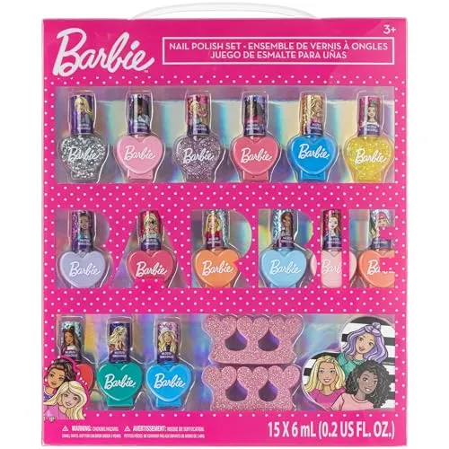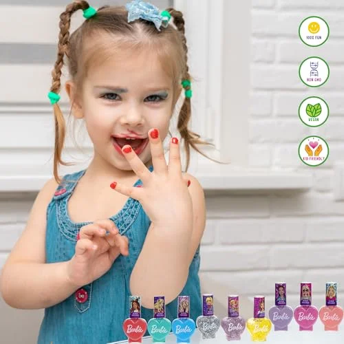 Barbie Kinder Nagellack Set (18-teilig) – Ungiftig, abnehmbar – Perfekt für Mädchen ab 3 Jahren von Townley Girl