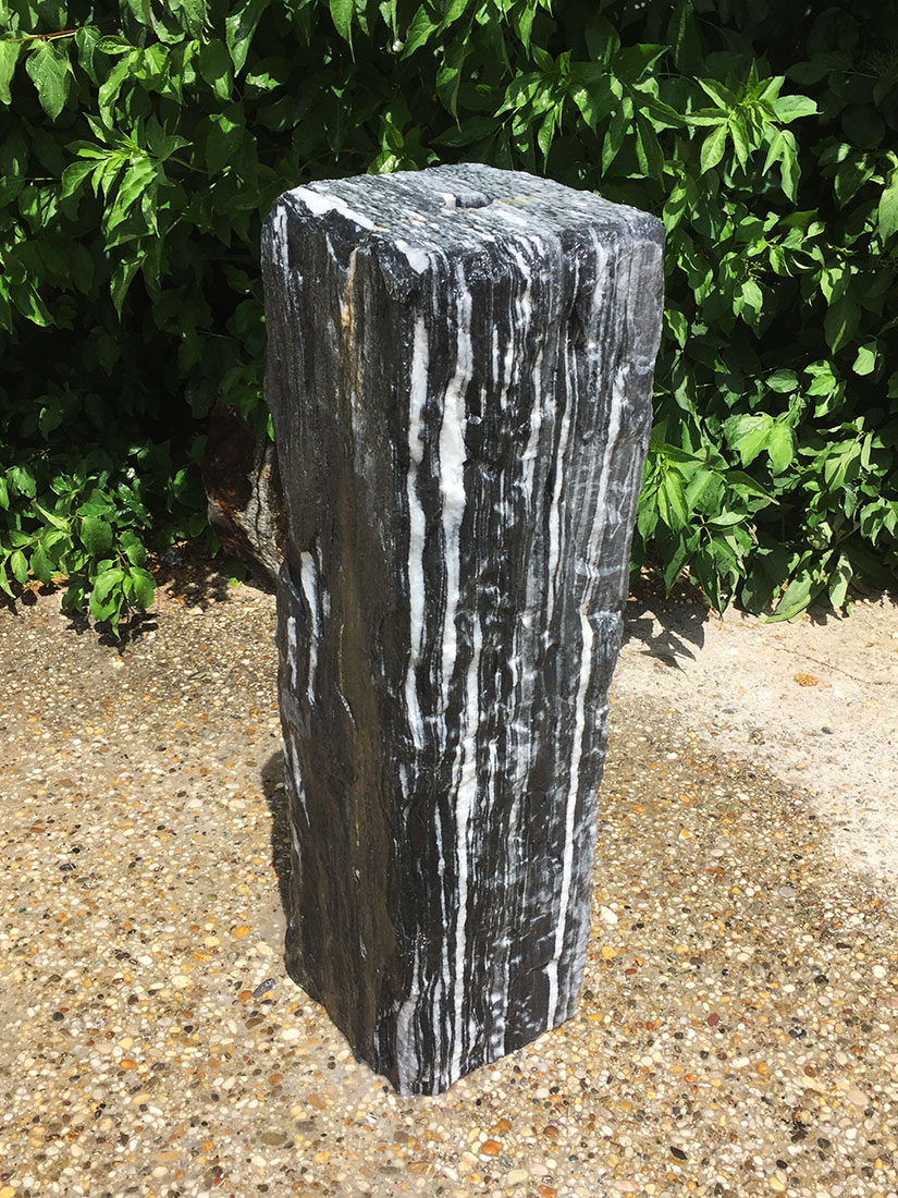 Dieser dunkelgraue bis schwarze Marmor mit seinen weißen Zeichnungen ist ein echter Blickfang und fügt sich perfekt in jedes Ambiente ein. Die felsige Stele vereint modernes Design mit rustikalem Stil. Das Material ist 100% frostsicher!