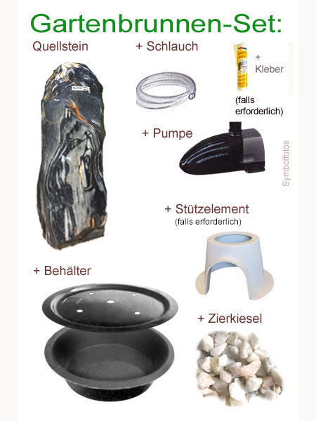 Sie können diesen Quellstein auch einfach als Gartenbrunnen Komplettset bestellen. (Wählen Sie hierzu einfach oben die Option im dropdown Menü)