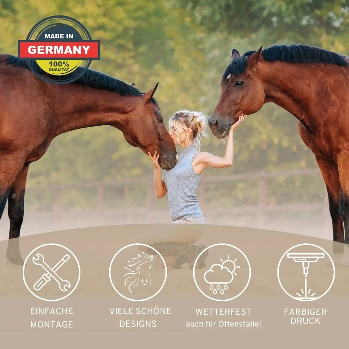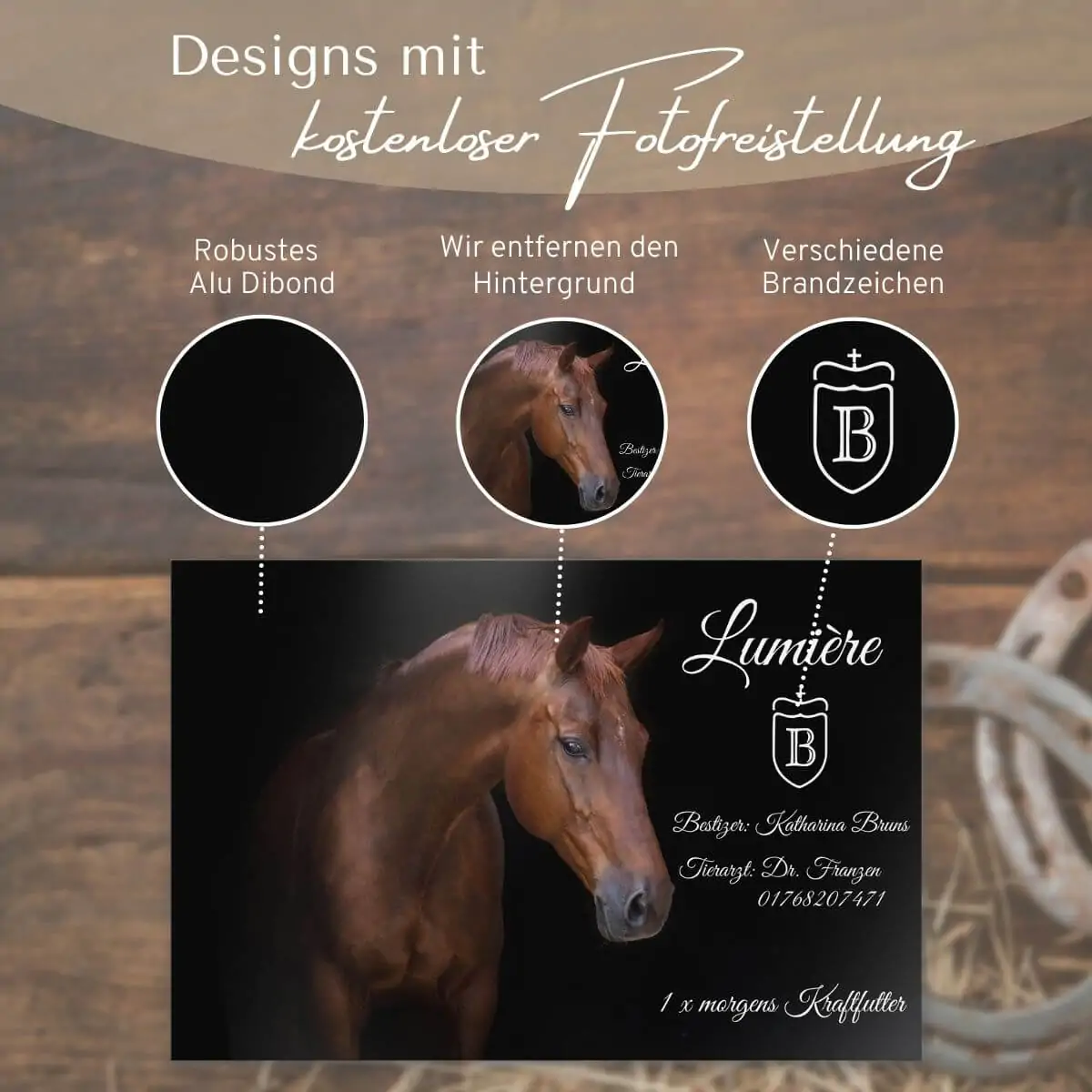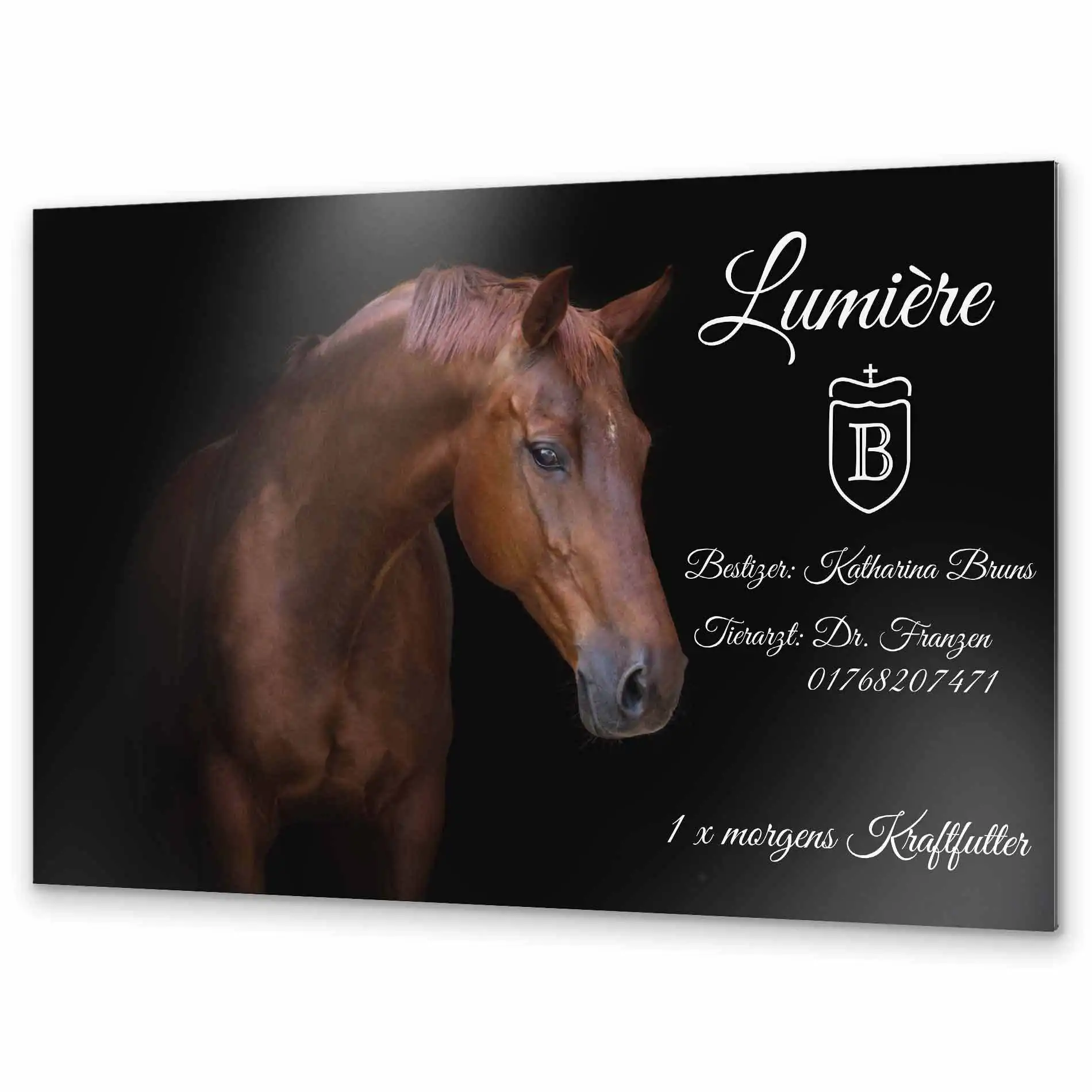 Bedruckte Pferde Stalltafel aus hochwertigem Alu Dibond