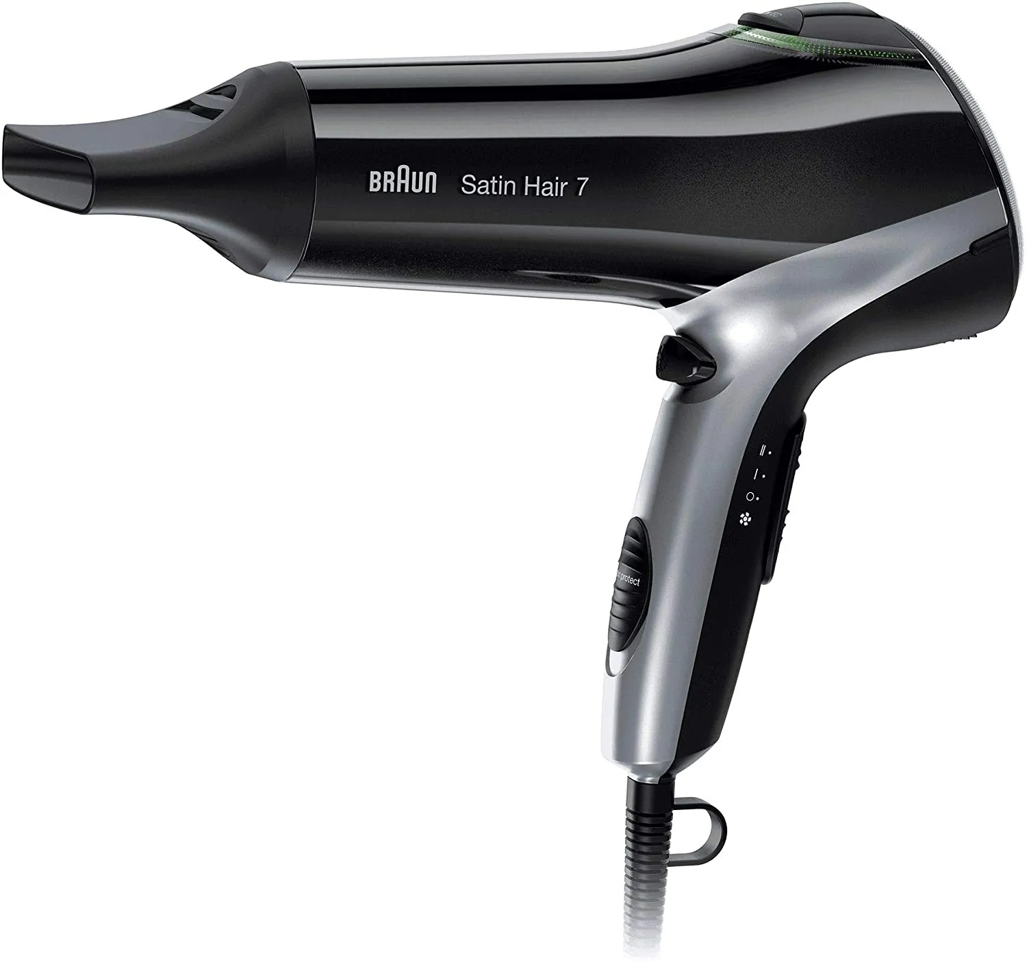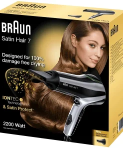 Der Braun Satin Hair 7 Haartrockner mit Iontec verfügt über die Satin-Protect-Technologie. Auf Knopfdruck wird die Temperatur auf 70 °C begrenzt, der starke Luftstrom aber aufrechterhalten. So sind Sie zu 100 % vor einer Überhitzung des Haartrockners und vor Haarschäden geschützt – für geschmeidiges, gesundes und glänzendes Haar.[/vc_column_text][/vc_column][vc_column width=“1/3″][vc_column_text]