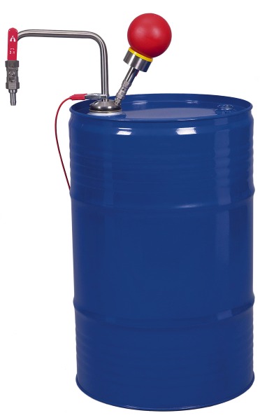 Die Lösemittelpumpe Handbetrieb ist für die kontaminationsfreie Entnahme von organischen Lösungsmitteln und aromatischen Verbindungen geeignet. Die Handpumpe arbeitet nach dem Überdruckprinzip. Mit dem Pumpenball wird ein Überdruck im Behälter aufgebaut, der die Flüssigkeit aus dem Gebinde herausdrückt.