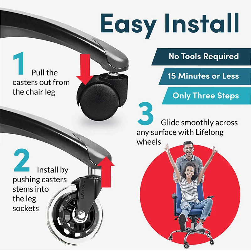 - 10mm-Räder: Geeignet für IKEA-Stühle. Wenn Ihr Stuhl von der Marke IKEA ist, empfehlen wir, diese Grösse für eine perfekte Passform zu wählen.