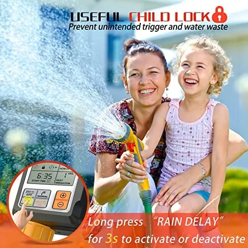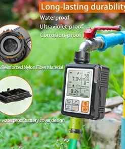 - Diese Bewässerungsuhr mit neuen pneumatisch abgedichteten Komponenten und einem oberen Anschluss aus 30 % verstärktem Nylonmaterial, schlagfester und verschleissfester als ABS, widersteht einem Wasserdruck von bis zu 116 psi, um ein Auslaufen im Inneren weitgehend zu vermeiden.