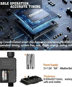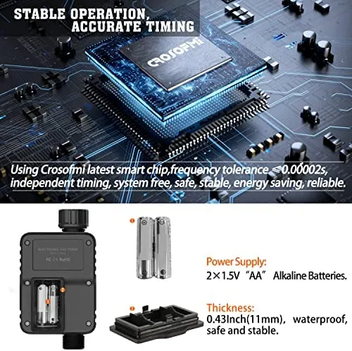 - Der digitale Wasserschlauch-Timer von CROSOFMI hat die erforderlichen Zertifizierungen wie CE, UL, FCC, usw. bestanden, 100 % ungiftig und geruchlos.