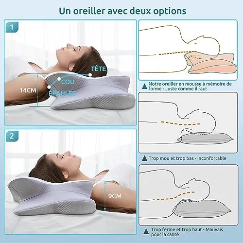 DONAMA Orthopädisches Kissen Ergonomisches Nackenstützkissen aus Memory Foam & Nackenkissen für optimale Unterstützung Kopfkissen für Seiten Rücken &Bauchschläfer