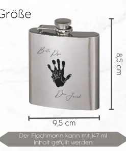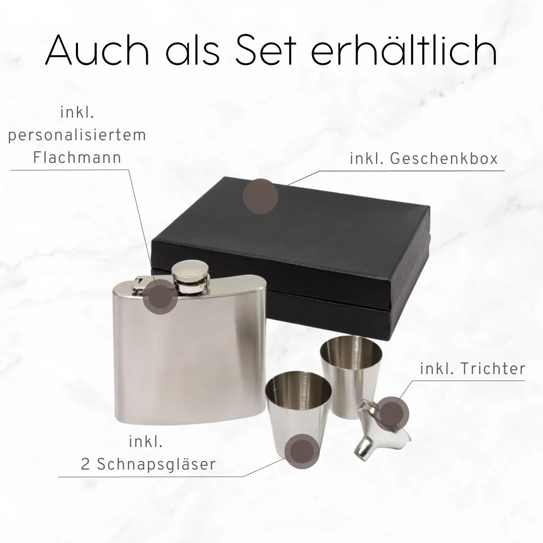 Ein besonderes Highlight ist die Gravur des Flachmanns mit einem tollen Design. Das perfekte Geschenk für deinen Vater, Opa, Sohn, Bruder, Freund oder Onkel. Auch als Geschenk für Trauzeugen ist er hervorragend geeignet.