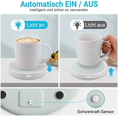 Eingebauter Schwerkraft-Induktionsschalter, legen Sie einfach Ihren Becher darauf, es wird automatisch eingeschaltet, keine Notwendigkeit, ihn manuell ein-/auszuschalten.