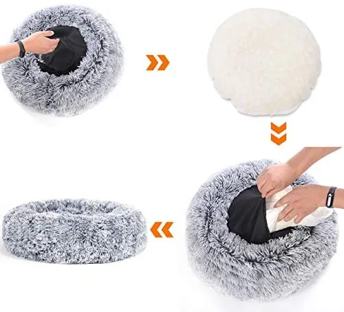 - Mit seiner runden Form, dem erhöhten Rand und der flauschigen Oberfläche schafft dieses Donut-Hundebett ein Gefühl der Geborgenheit, stützt Kopf und Nacken, hält Ihren pelzigen Freund warm, bequem und sicher und lässt ihn in süsse Träume versinken.