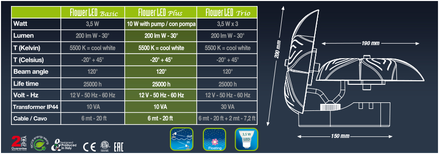 die LED-Blume (ca.-D: 18 cm) wird auf der Wasseroberfläche platziert und erzeugt schwimmend harmonische Leuchteffekte und Wasserspiele!