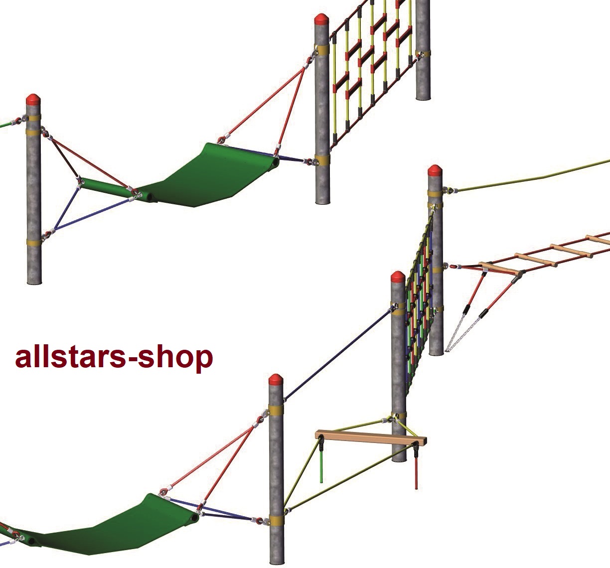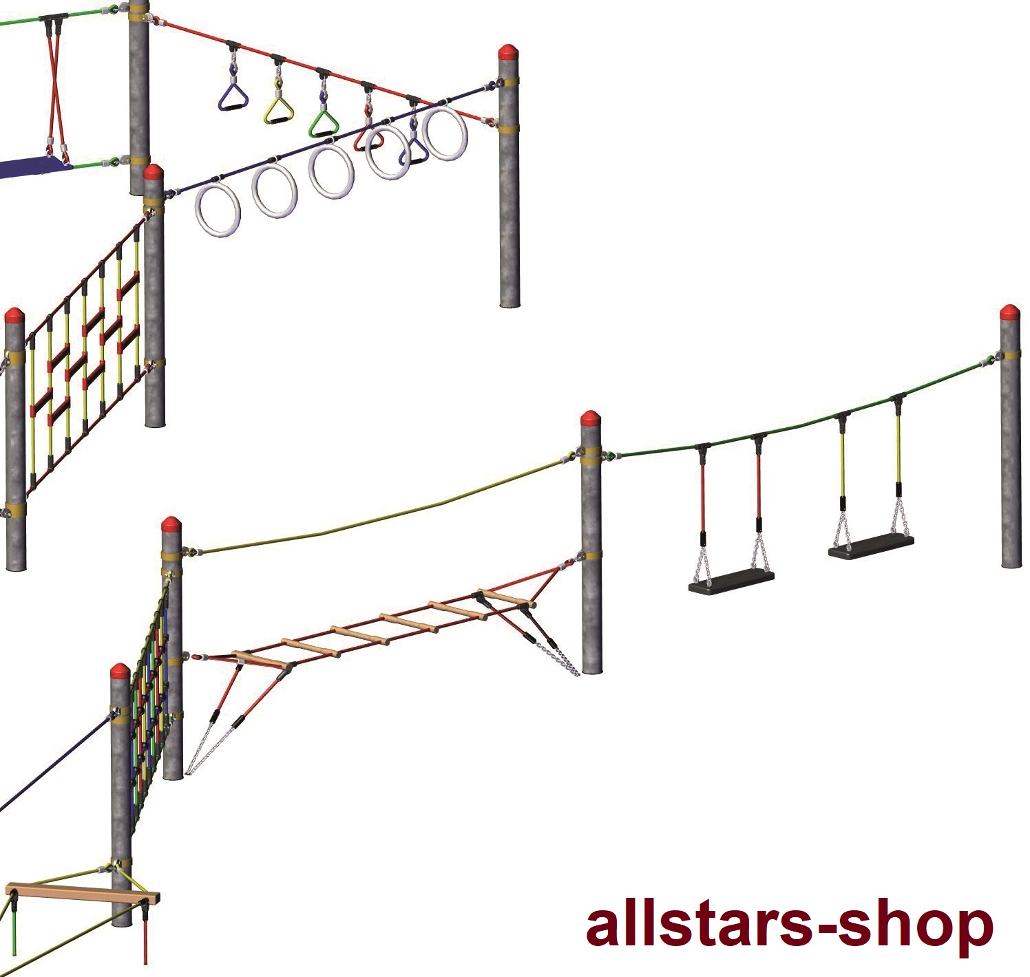 Das Original aus dem Allstars-Spielplatzgerätesystem des exklusiven Kindergartenausstatters. Wer Nachahmungen ablehnt, der wählt die Originale von Huck-Seiltechnik! Vertrauen Sie Ihren Spielplatz einem Hersteller an, der Erfahrung und Kompetenz zu vereinen weiß!