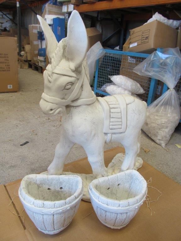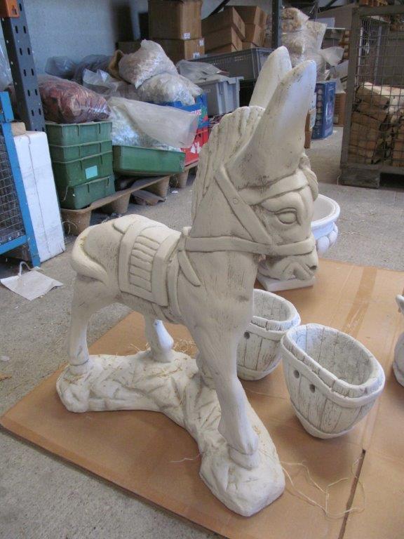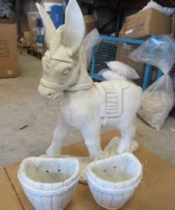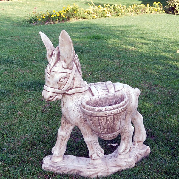 Dieser brave Esel trägt zwei Körbe auf seinem Rücken, die sich ideal zum Bepflanzen eignen. So können Sie dieser Figur noch Ihren ganz persönlichen Touch verleihen.