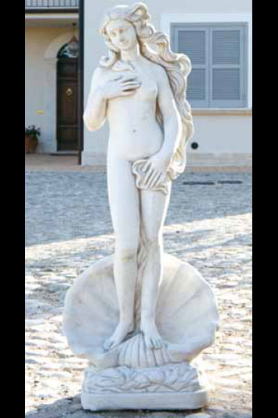 Venus, die Göttin der Liebe, Schönheit und des erotischen Verlangens stellt sich hier in aller Pracht dar. Sie steht, wie in allen klassischen Darstellungen, in einer Muschel und ihre langen Haare wallen um sie herum, bedecken sie stellenweise.