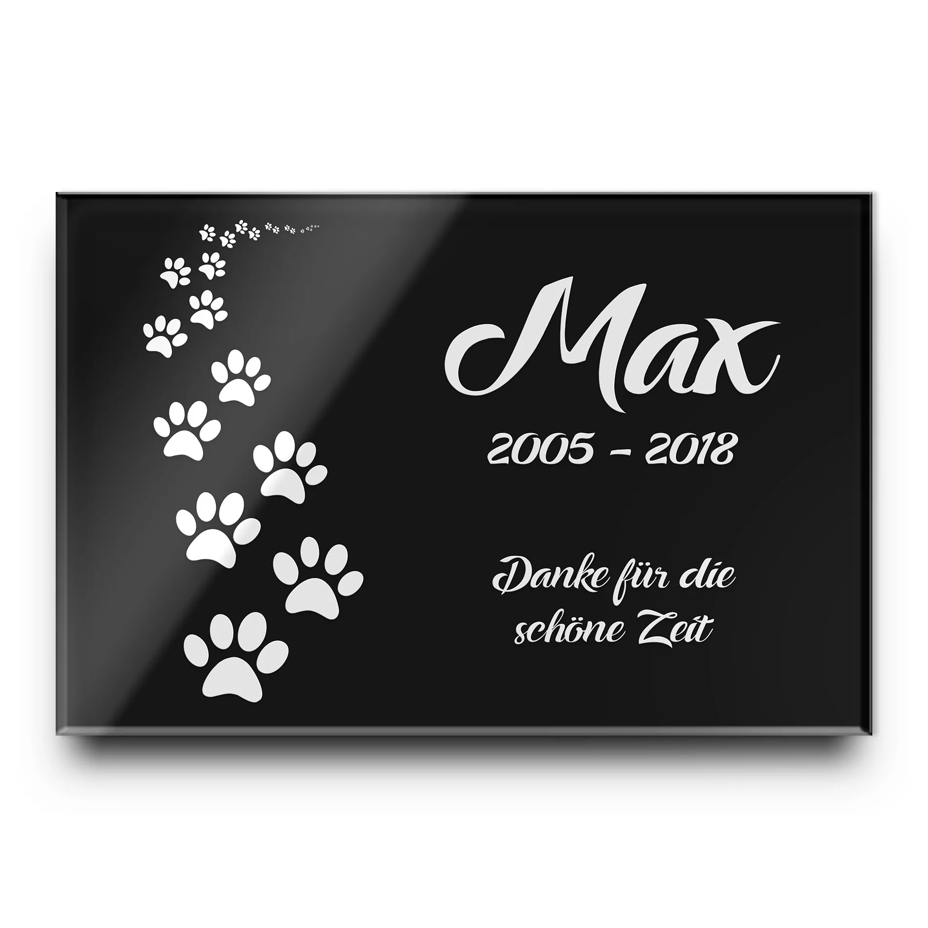 Gedenktafel „Pfoten“ aus Hochglanz Acrylglas 30×20 cm