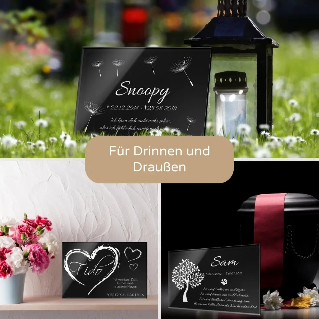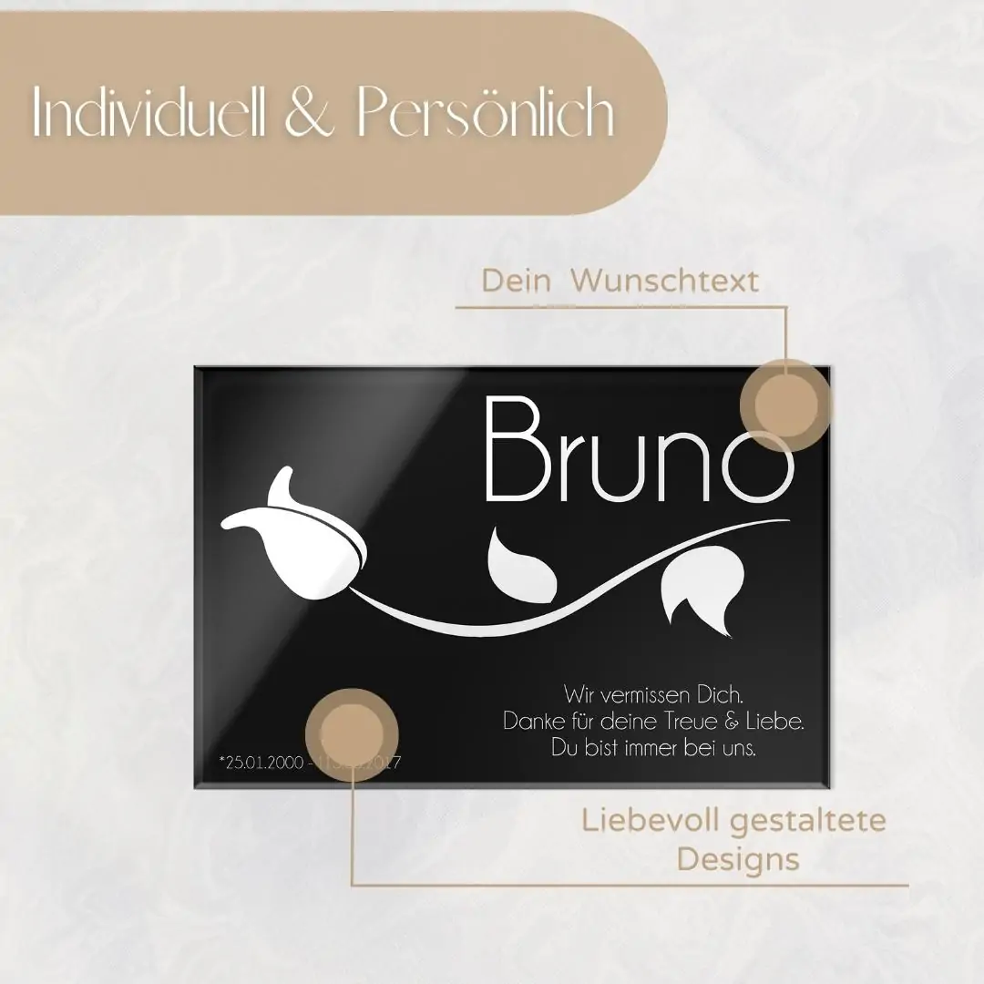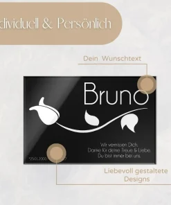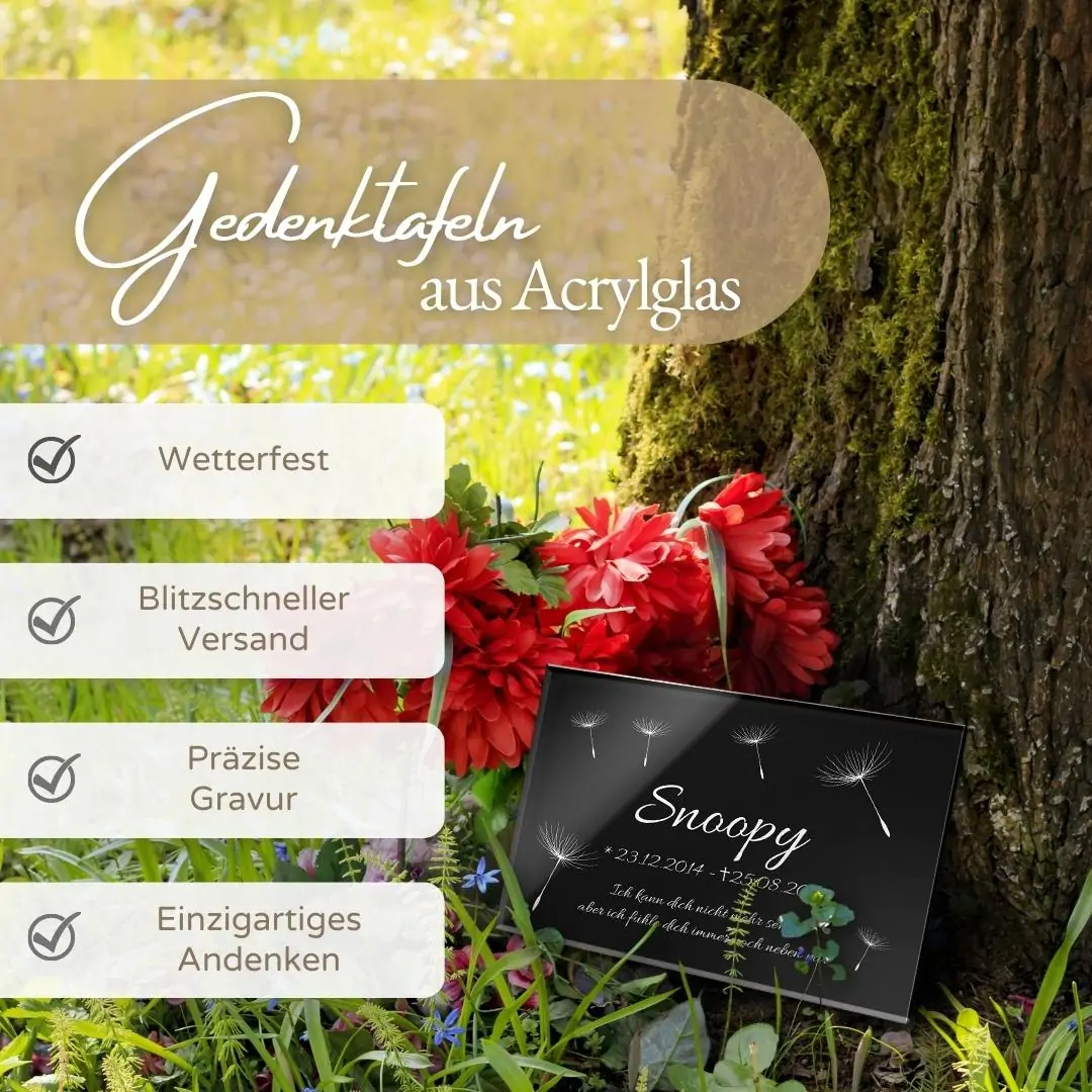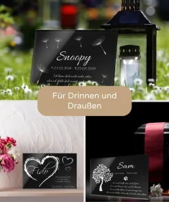 • Grabtafel aus Hochglanz Acrylglas mit Gravur