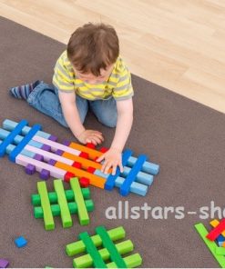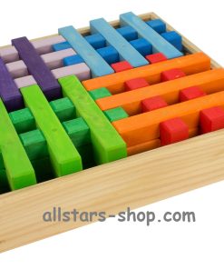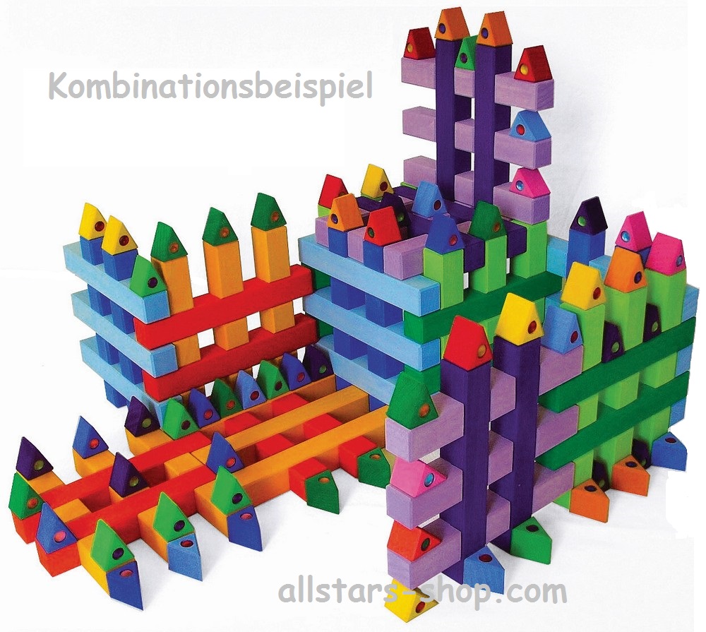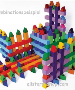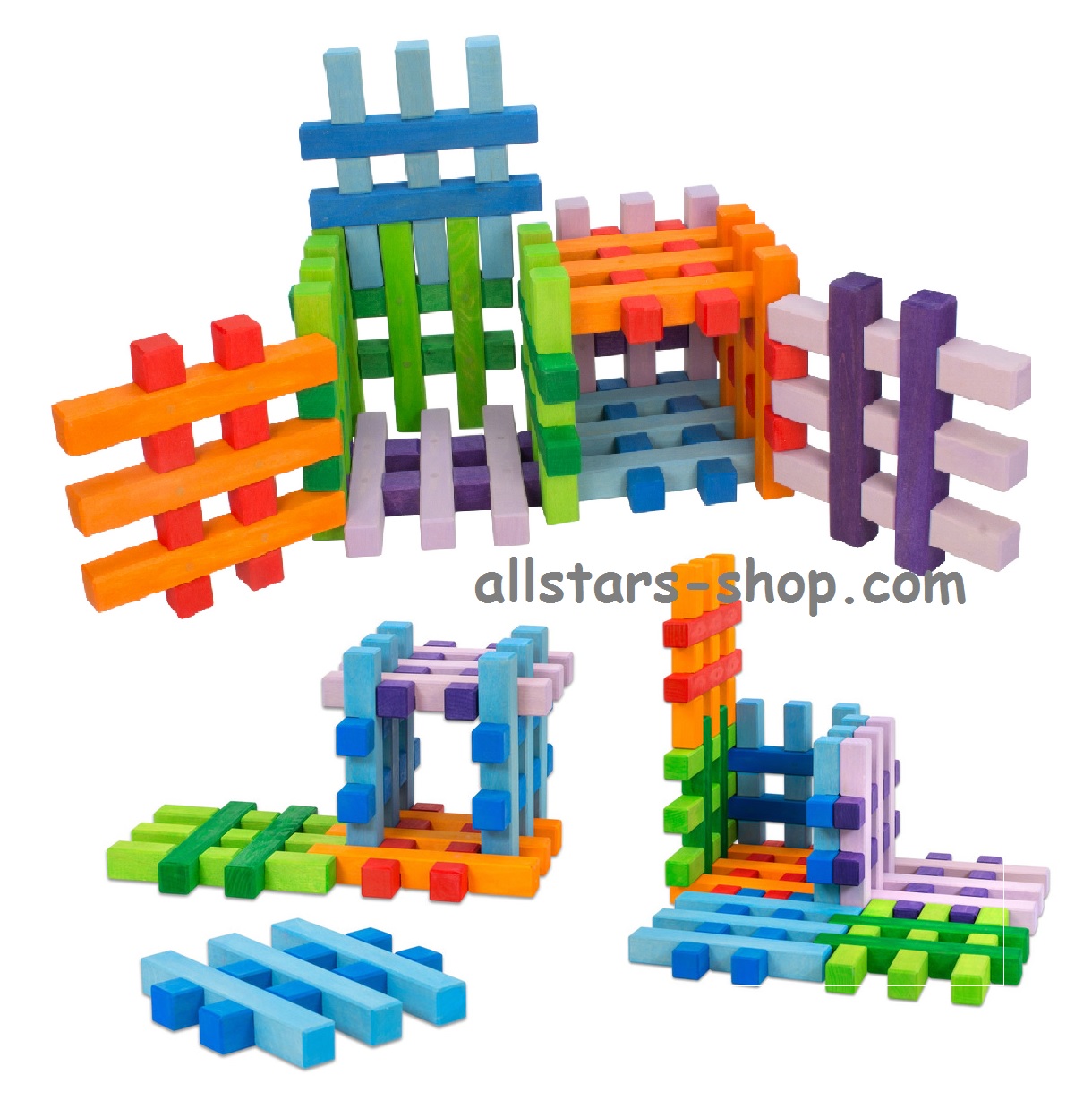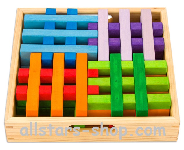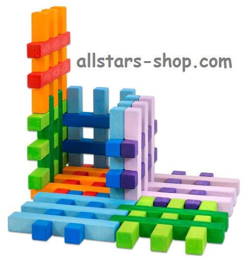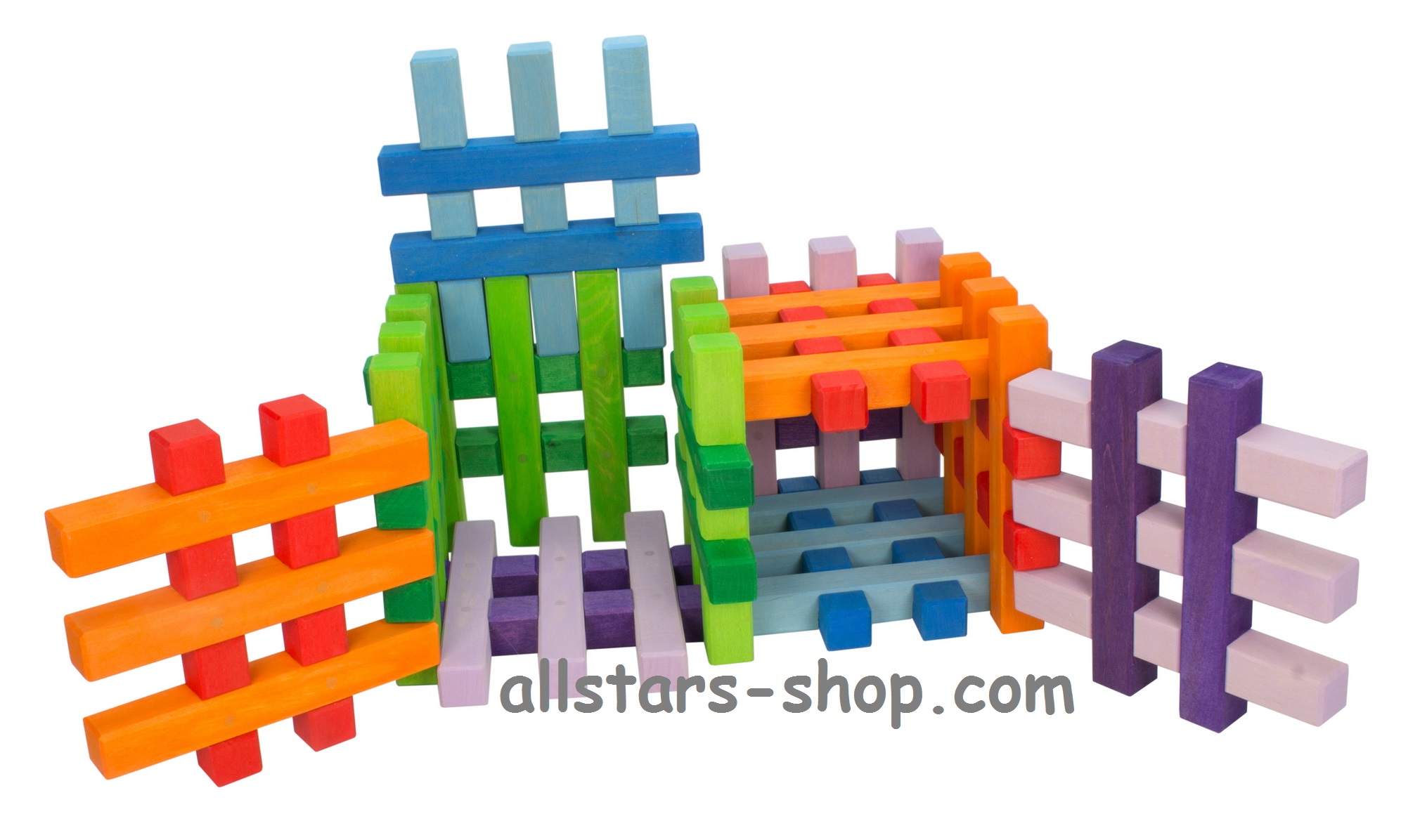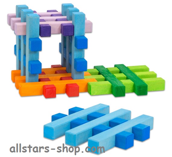 Die bunten Gitterklötze bestechen mit ihren 4 verschiedenen Farbgebungen, von denen jeweils 3 Stück enthalten sind. Es ist jeweils ein heller und ein dunkler Ton derselben Farbe verwendet. Die Bauklötze in Gitterform in verschiedenen Farben lassen sich spielerisch mit anderen Produkten aus der Bauspiel-Reihe kombinieren. Die schönen Farbkombinationen machen viel Lust zum Bauen!