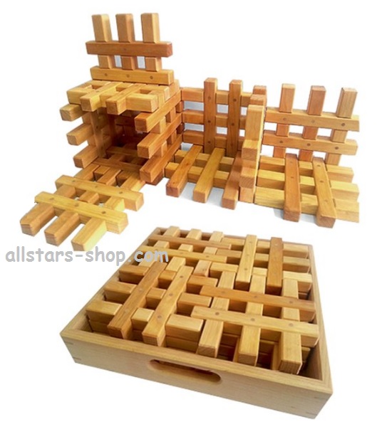 Die holzfarbenden Gitterklötze können auf vielfältige Art ineinander gesteckt werden. Sie können außerdem mit anderen Produkten aus der Bauspiel-Reihe kombinieren werden. Die schönen Farbkombinationen machen viel Lust zum Bauen!