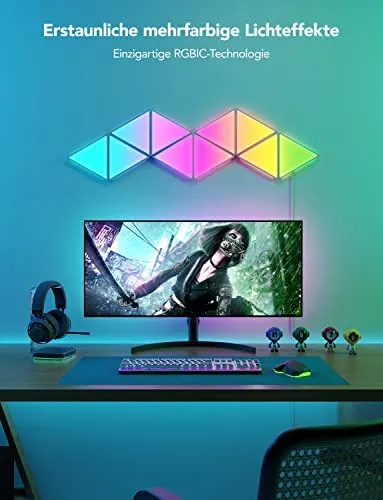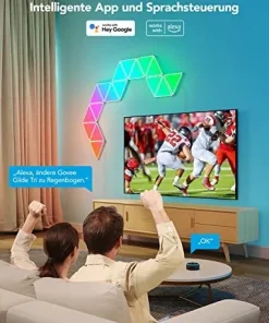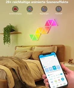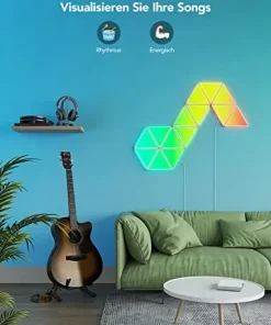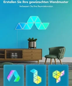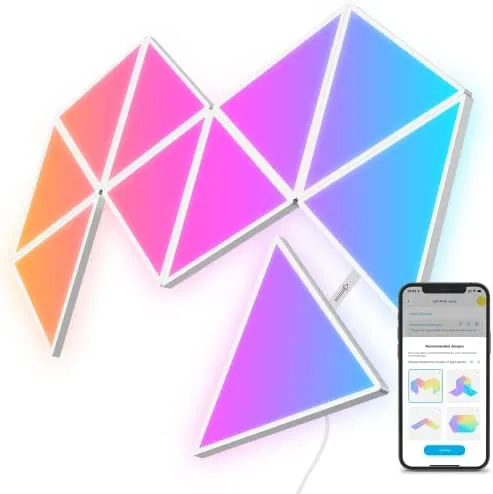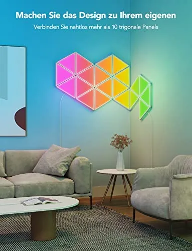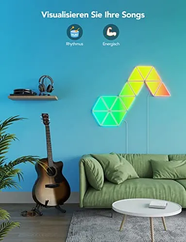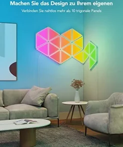 • DIY-Wandleuchte: Wählen Sie aus empfohlenen Designs in unserer App oder entwerfen Ihr einzigartiges Triangel-Panel-Layout. Personalisieren Sie die Farben und Effekte auch, erstellen einzigartige modulare Panels für Ihr Wohn- oder Schlafzimmer.