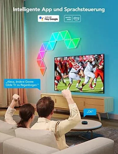 Govee Glide Triangel LED Light Panels, RGBIC Triangle Lichtpanels, Smart Wi-Fi LED Wandleuchten, Farbwechsel, Music Sync, DIY, App-Steuerung, funktioniert mit Alexa und Google Assistant