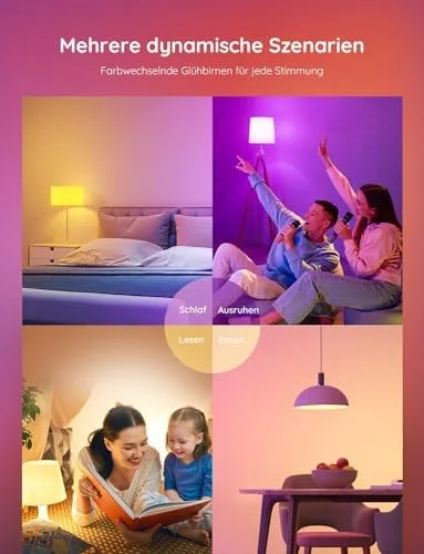 Entdecken Sie Millionen von Farben und 54 Szenenmodi mit der Govee E27 LED-Glühbirne – für ein fantastisches Lichterlebnis! (AC 220-240V)