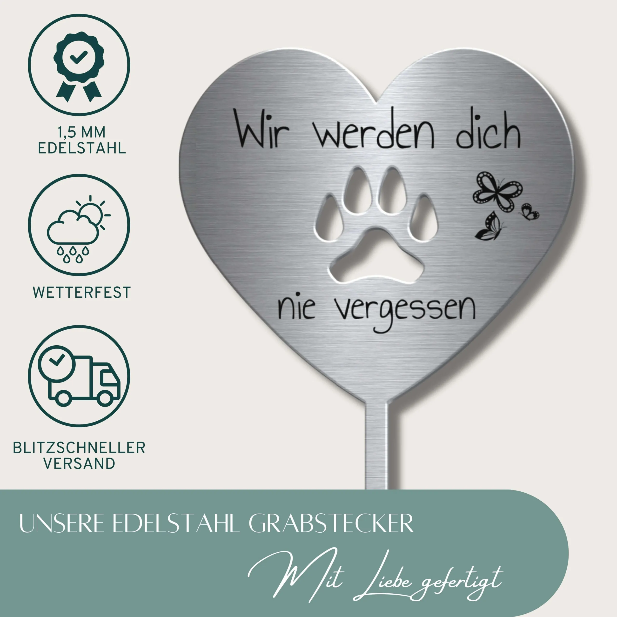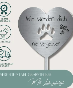 Grabstecker sind eine schöne Idee für alle, die einen geliebten Menschen oder ein geliebtes Haustier verloren haben. Der Grabstecker kann sowohl auf dem Friedhof als auch im Garten oder im Haus verwendet werden. Dank des langen Steckers kann man selbst bestimmen, auf welcher Höhe das Motiv zu sehen sein soll. So kann man z.B. abseits vom Friedhof eine private Trauerecke zu Hause einrichten, oder die letzte Ruhestätte mit einer weiteren persönlichen Note verzieren.