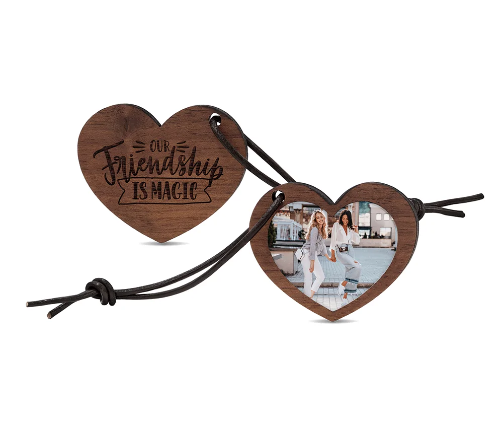 – Material: Echtholz Nussbaum (dunkel) – Form: Herz – Mit Fotodruck und individueller Gravur – Größe: 5 x 4 cm – Stärke: 5 mm – Mit hübscher Baumwollschnur – Weitere Formen: Oval, Rechteckig, Rund, Puzzle, DogTag, Herz, Blume/Kleeblatt, Anker, Herzhälften, Kalender, Kompass.