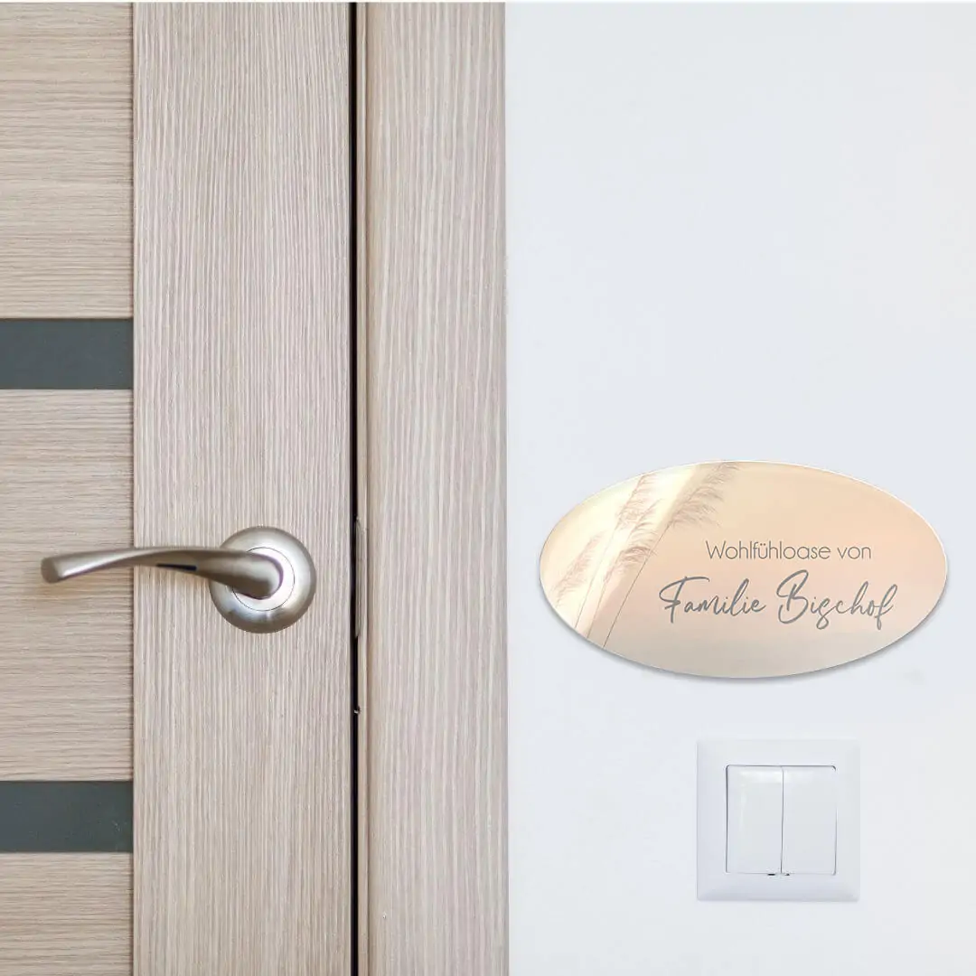 • Ovales Türschild aus Hochglanz Acrylglas mit Wunschtext