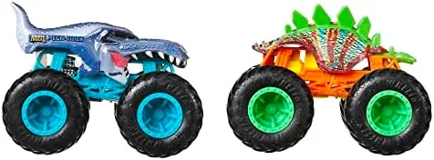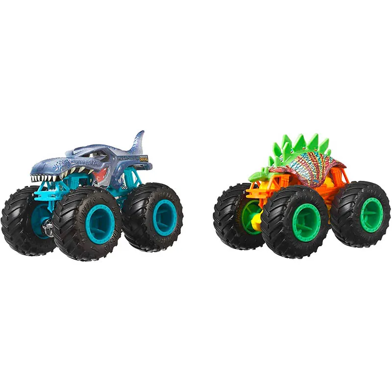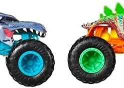 Hot Wheels HHY43 – Monster Trucks Massstab 164 2er-Pack, 2 Spielzeugtrucks mit riesigen Rädern, Spielzeugauto Geschenk für Kinder ab 3 Jahren Jahren