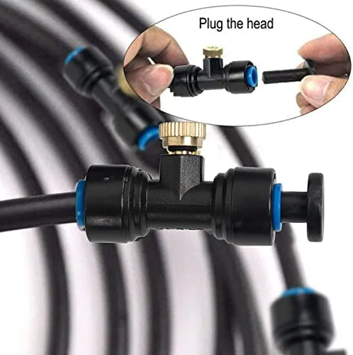 HUAZIZ 21 Stücke T-Stück Wasserrohr Verbinder mit Messing Nebeldüsen Bewässerungssystem Sprayer Sprinkler Sprühdüse T-Steckverbinder Kühlsystem Outdoor Misting System Zubehör