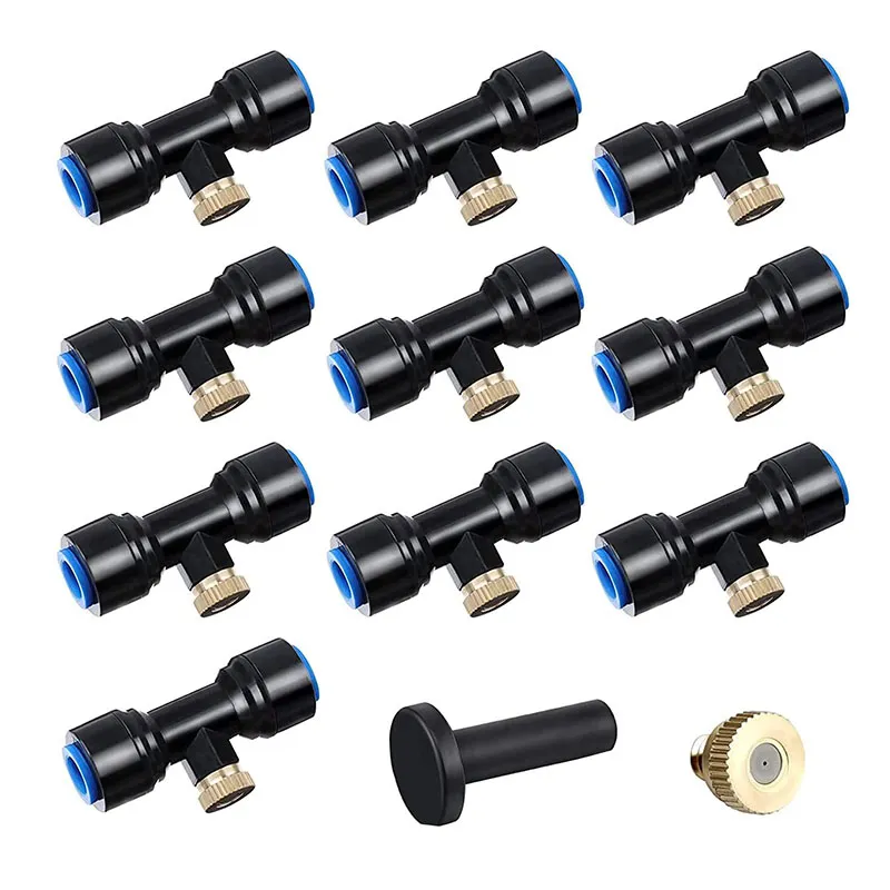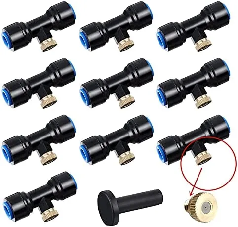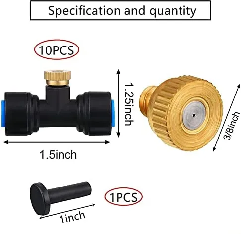 • Ausreichende Menge: Wir liefern Ihnen 10 Stück Wassernebeldüsen-T-Stücke, 10 Stück Messingdüsen und 1 Stück schwarze Stopfen, ausreichende Menge reicht für den täglichen Gebrauch und Austausch, schönes Zubehör kann nach Belieben ausgetauscht werden, was mehr Komfort bringt.