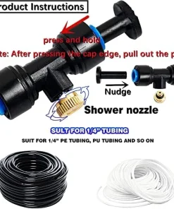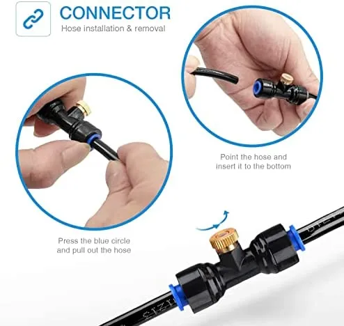 • Langlebige Qualität: Unser Sprühkühlgerät aus hochwertigem Material, der Nebeldüsen-T-Anschluss ist aus POM-Material, robust und langlebig, die Nebeldüsen sind aus Messingmaterial, nicht leicht zu rosten und zu korrodieren.