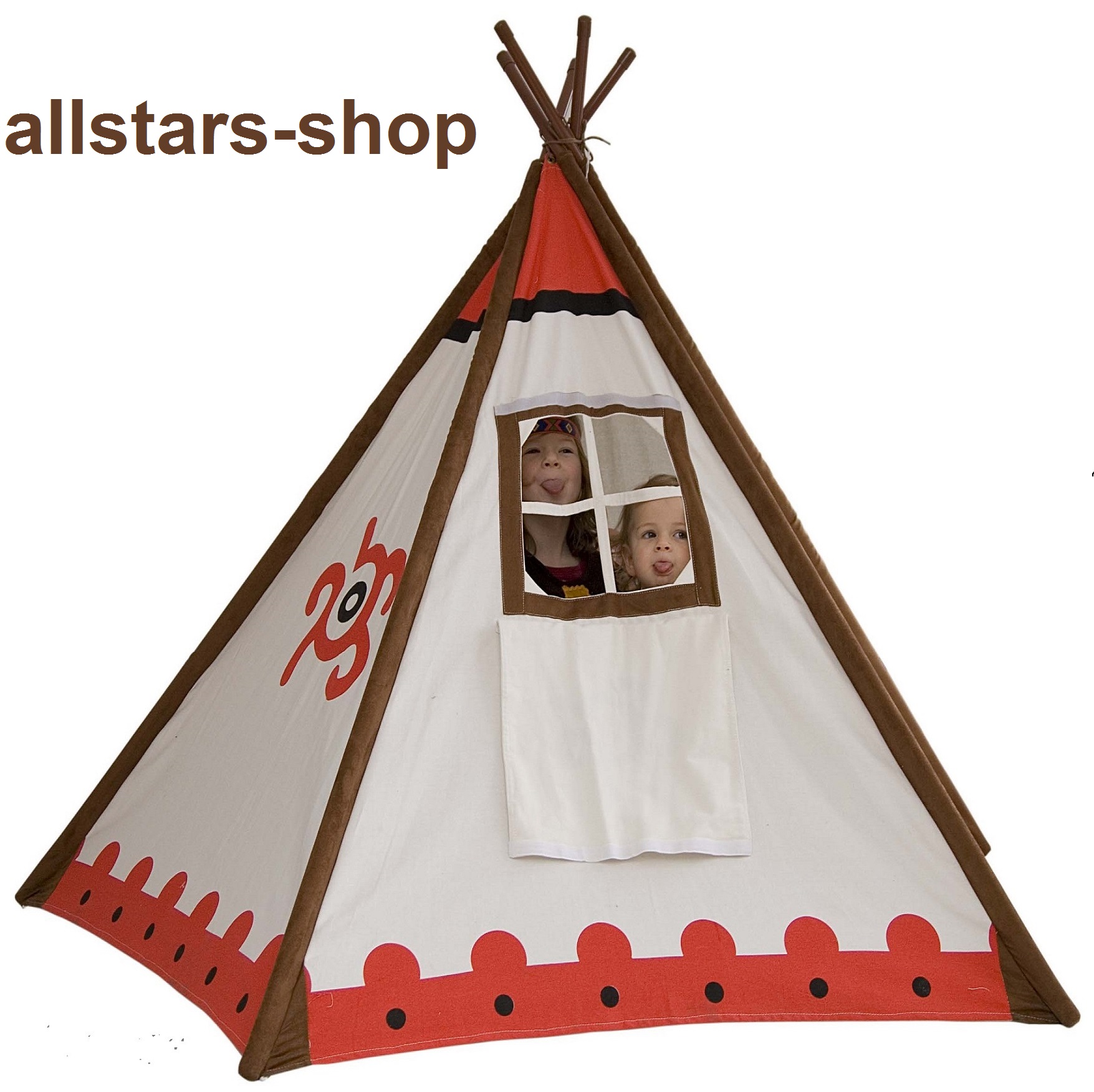 Dieses beliebte Indianer-Spielzelt ist faltbar, leicht aufzubauen und bietet Platz für mehrere Kinder. Zusammengefaltet bietet es Platz in jedem Kofferraum.