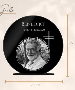 Das Trauer Bild kann als Erinnerungsstück im eigenen Wohnzimmer, bei einer privaten Gedenkstätte oder Trauerecke verwendet werden. Das Acrylglas ist grundsätzlich zwar stabil & wetterfest, muss im Außenbereich allerdings verklebt werden, um einen stabilen Halt bei Wind & Wetter zu bieten