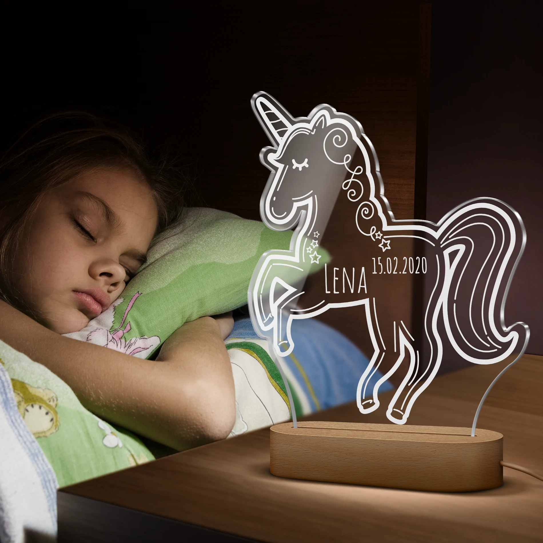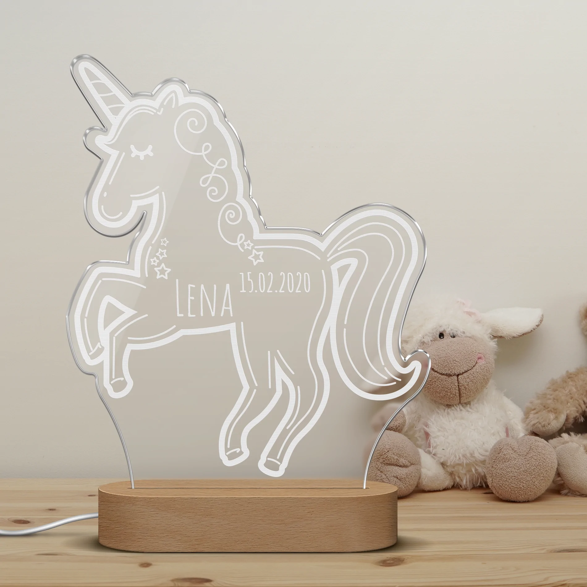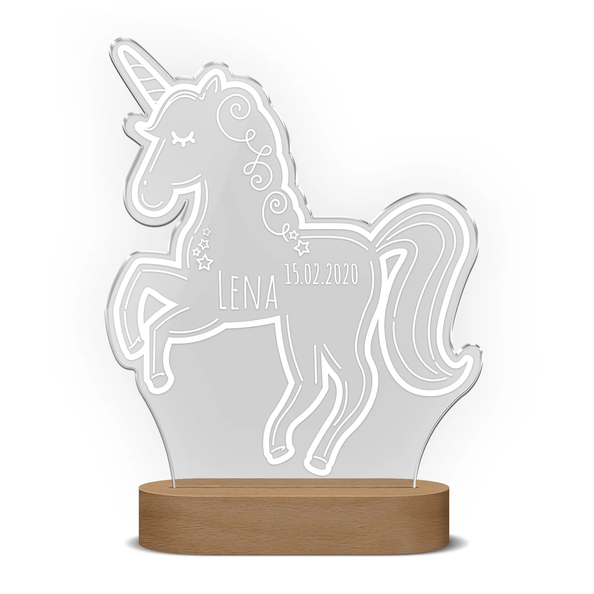 Personalisierbare Nachtlichter aus Acrylglas (Einhorn)