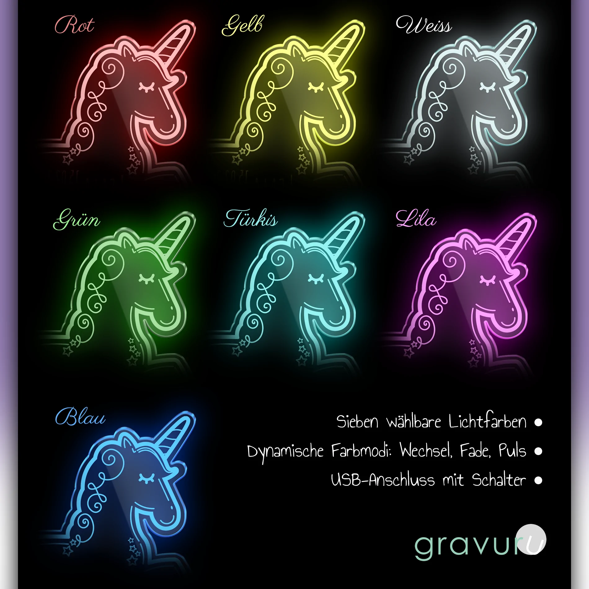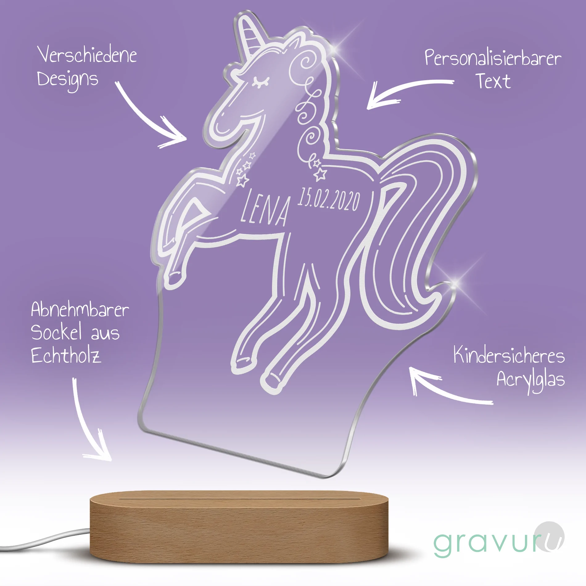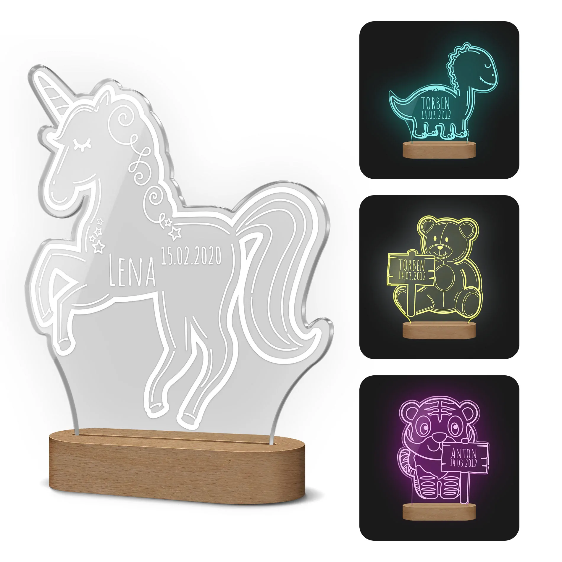 Personalisierbare Nachtlichter aus Acrylglas (Einhorn)