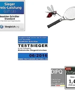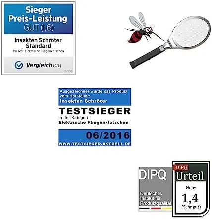 - Sehr gut (Note 1,4) im Vergleichsurteil der Kategorie „Elektrische Fliegenklatschen“ des Deutschen Instituts für Produktqualität (02/2018)
