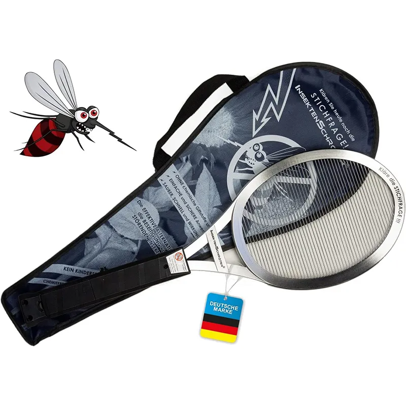 Die einen Tennisschläger ähnelnde Klatsche ist einfach zu bedienen, leicht und dennoch robust. Sie können entweder wie bisher die Insekten auf einer Fläche sitzend fangen oder auch durch gezielte Schläge in der Luft abfangen. Damit das Fanggitter unter Strom gestellt wird muss ein Knopf gedrückt gehalten werden – nur dann ist der InsektenSchröter einsatzbereit.